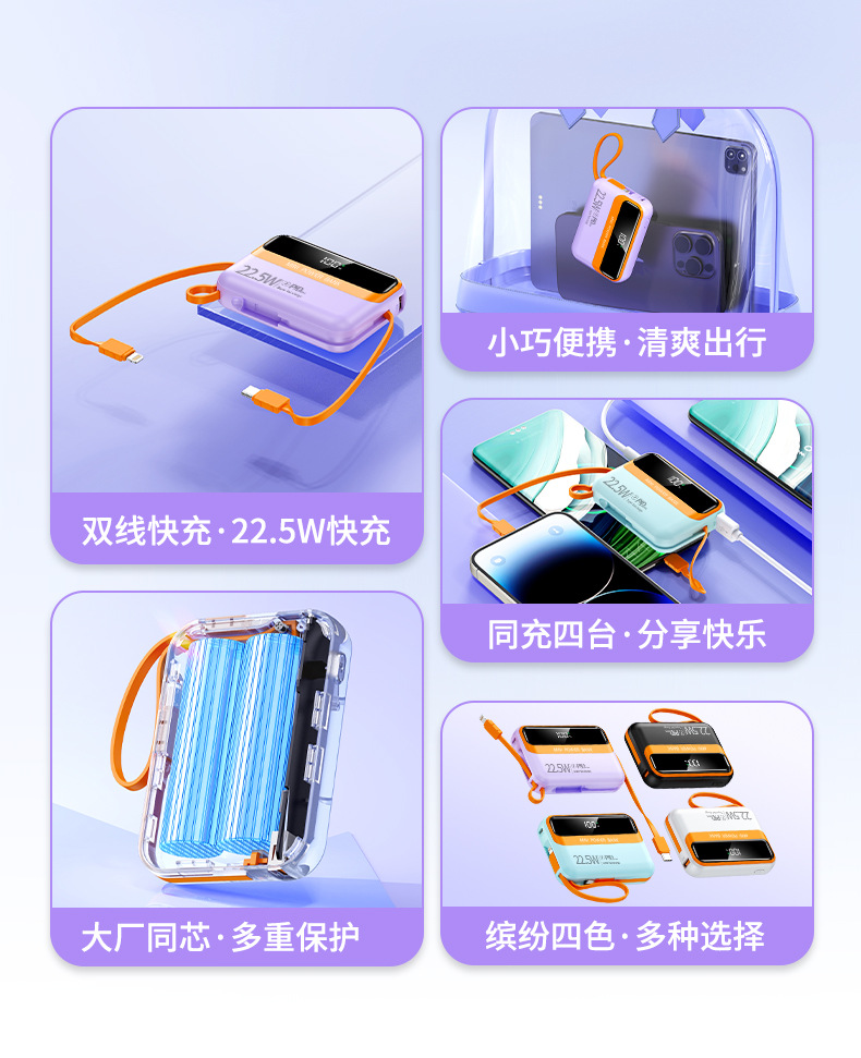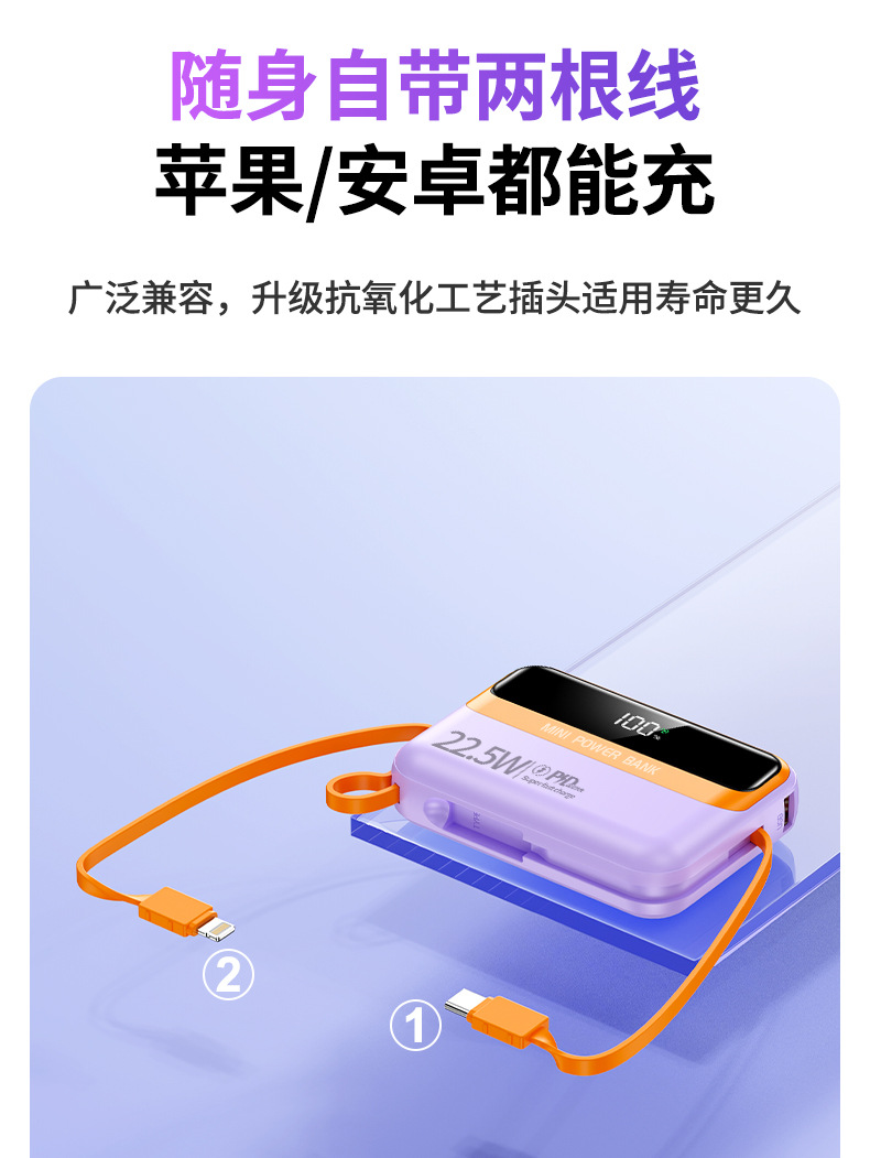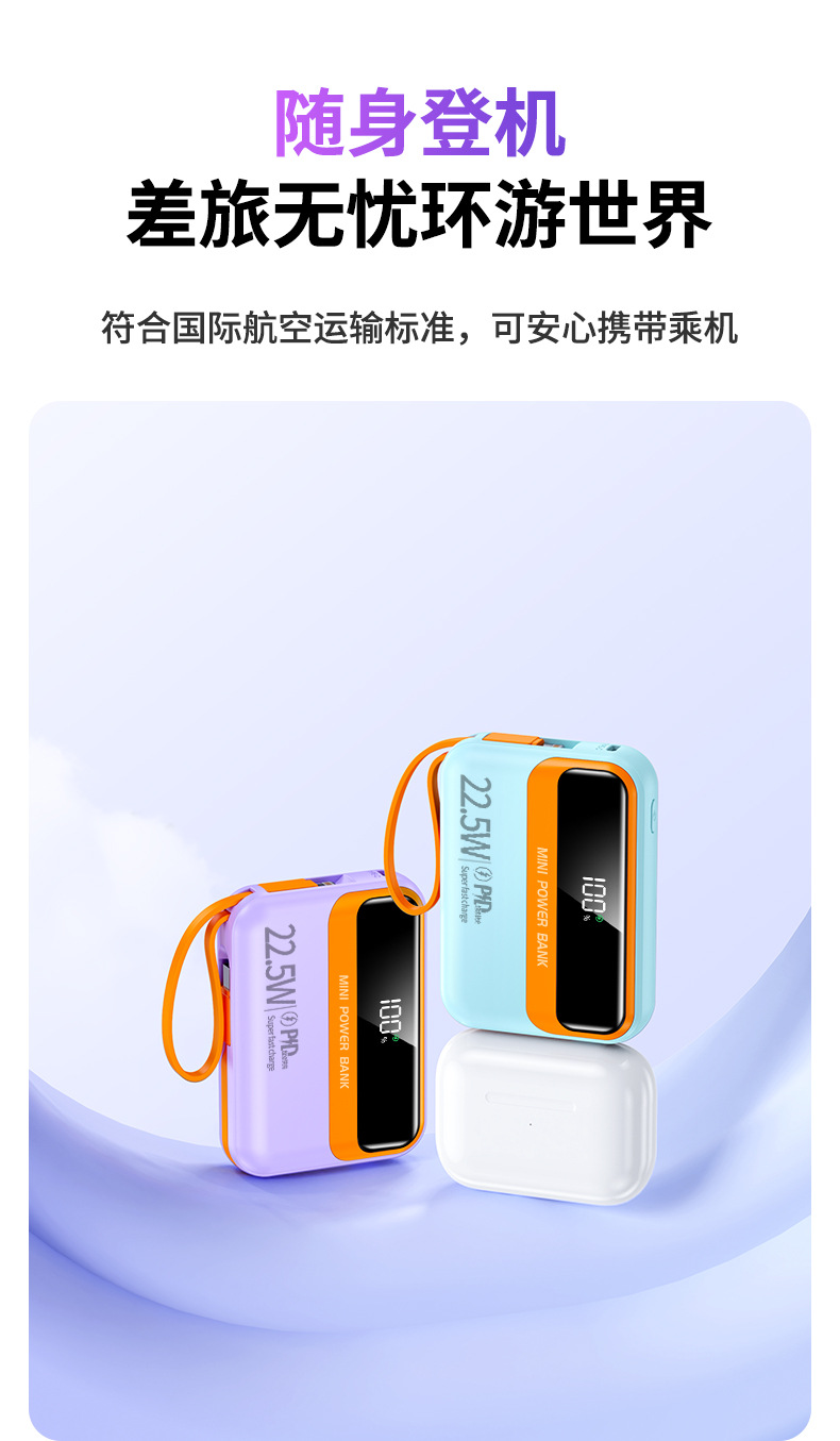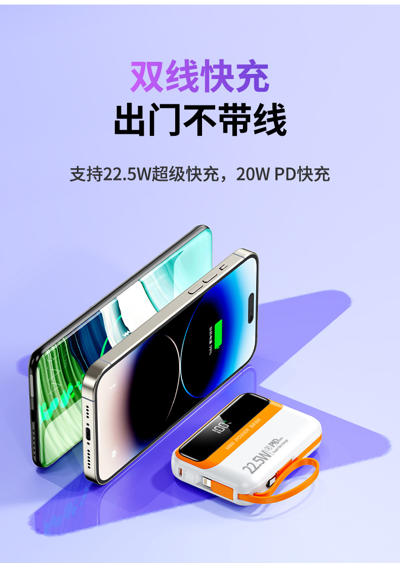 コンパクトミニケーブル付き 22.5W 急速充電パワーバンク 20000mAh 大容量モバイル電源スポット卸売