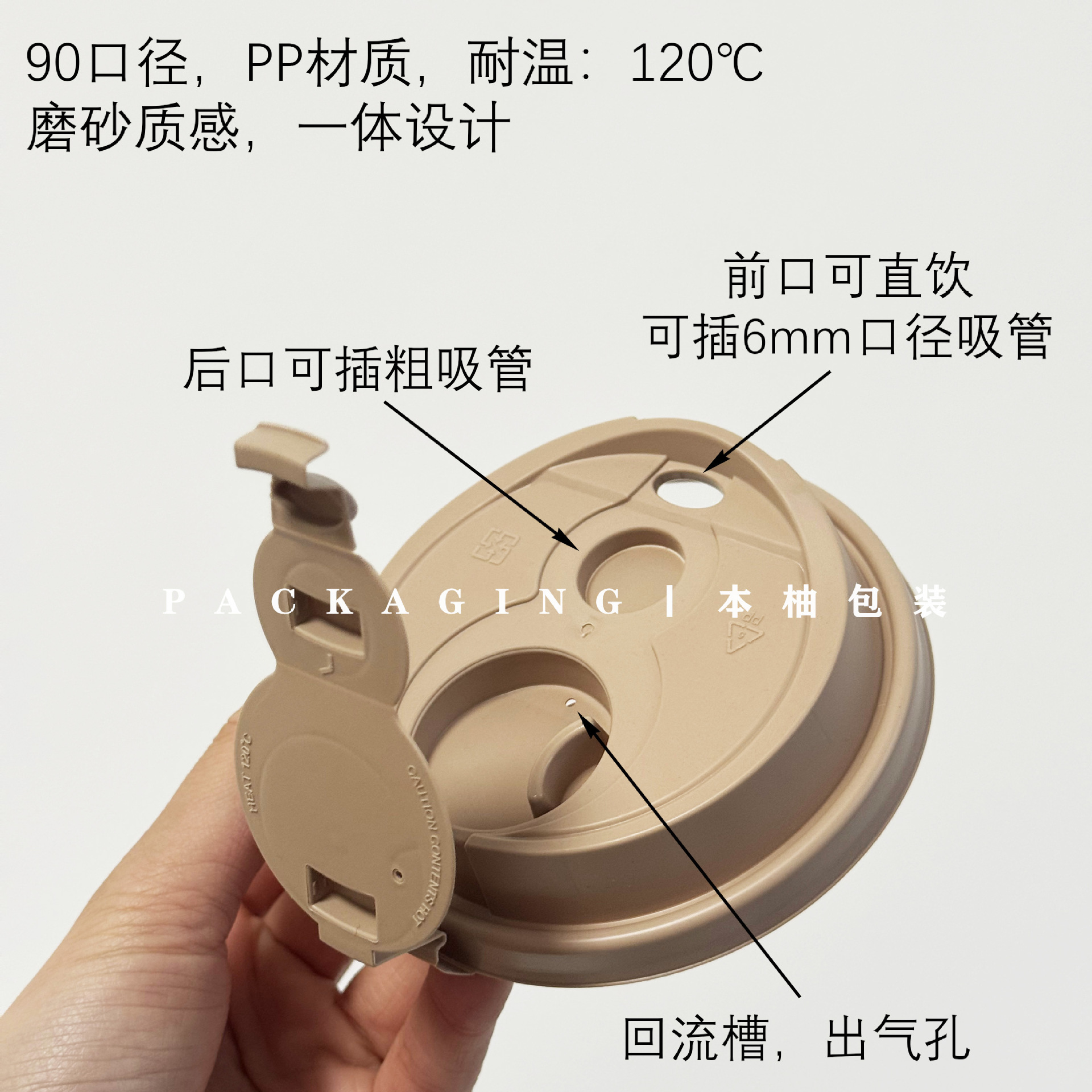 90口径多功能一体盖一次性防漏杯盖加厚PP外卖打包奶茶杯盖注塑盖