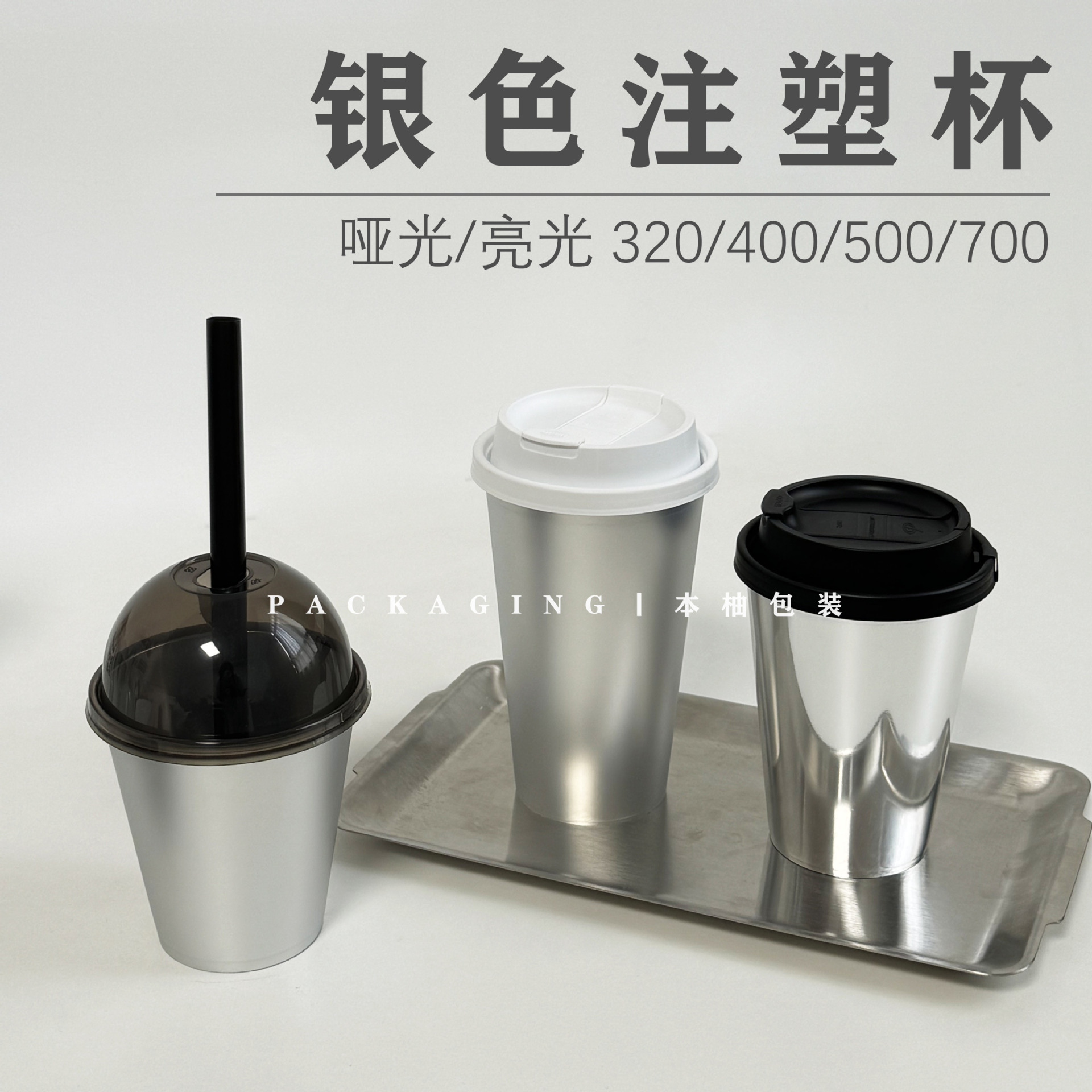 320/400/500/700ml使い捨て銀色フィルム内蔵射出成形カップ光沢マットコーヒーミルクティー用プラスチックカップ