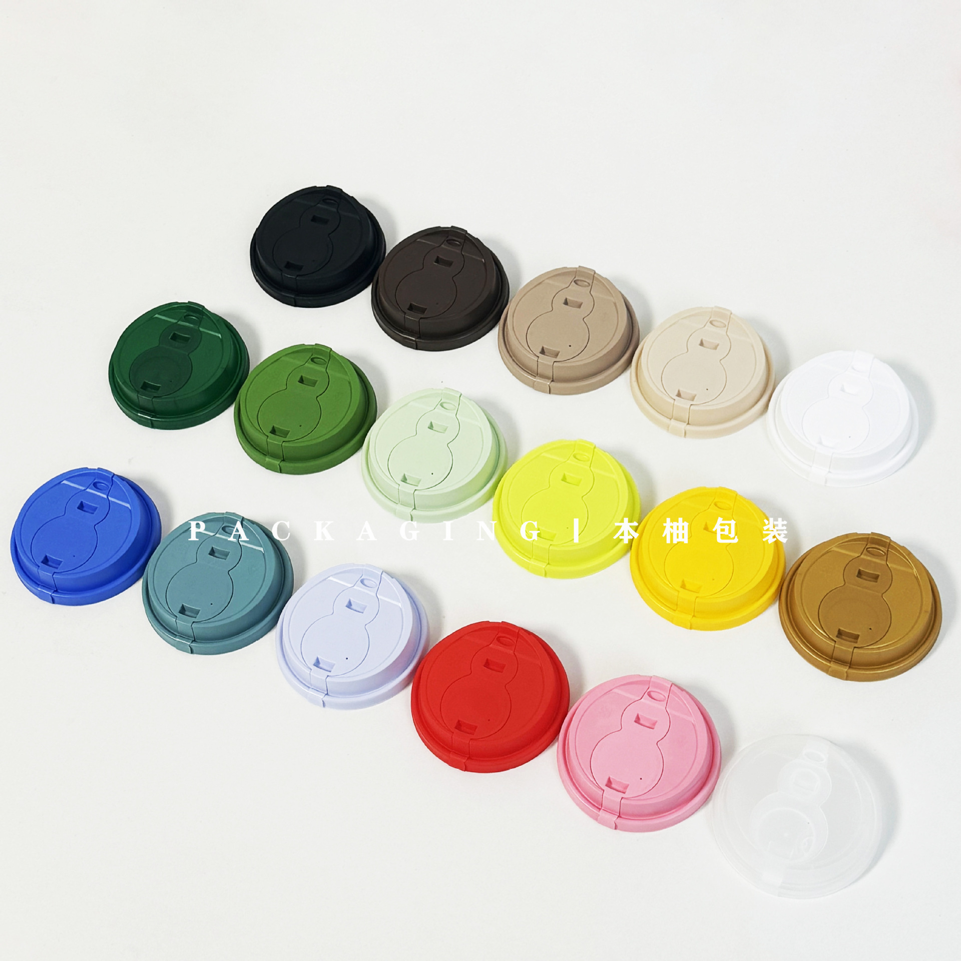 本柚 使い捨て90口径漏れ防止コーヒー・ミルクティー持ち帰り用カラフル一体型射出成形直飲み蓋