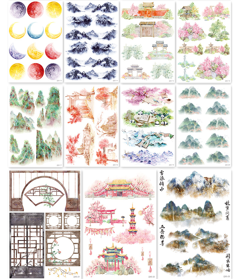 手帳petテープ造景パンダ花暗黒古風和紙流麻飾り手帳素材diyシール