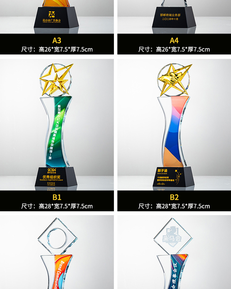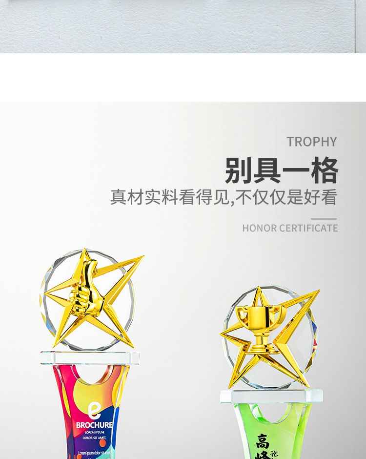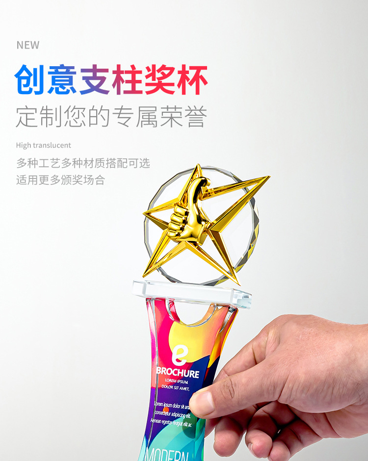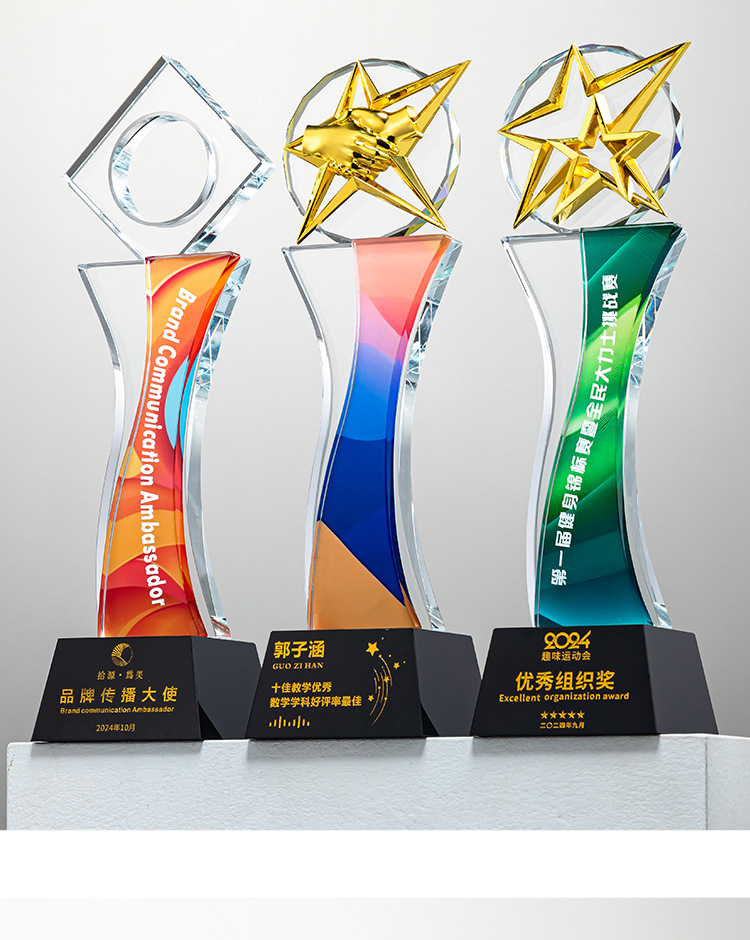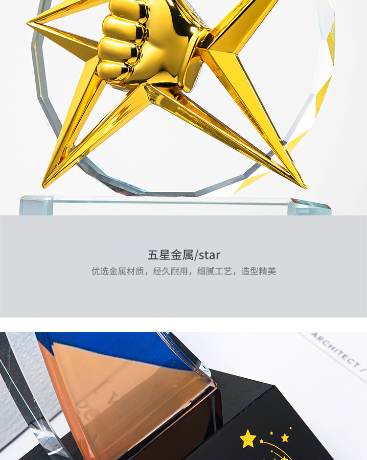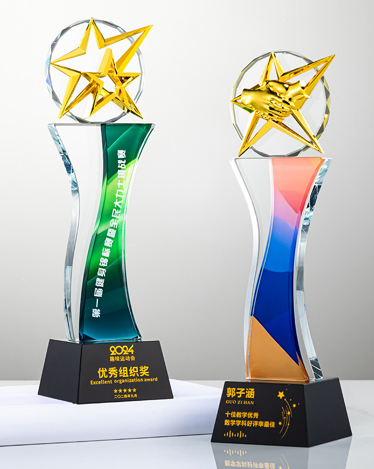 水晶トロフィーチーム年次総会優秀社員優勝五角星自慢トロフィー創意記念品