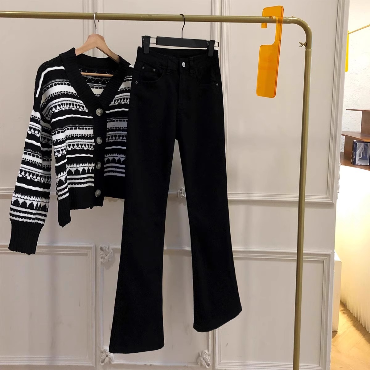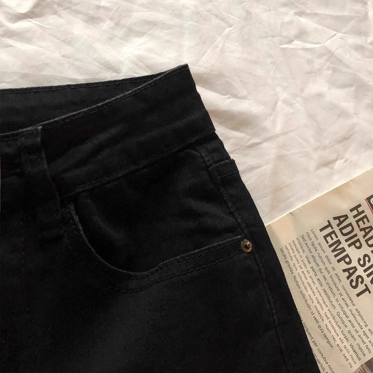 微太って黒いジーンズを着ている女性の春秋新モデル2024大サイズの太ったmmは、腰の高いトランペットを身に着けている