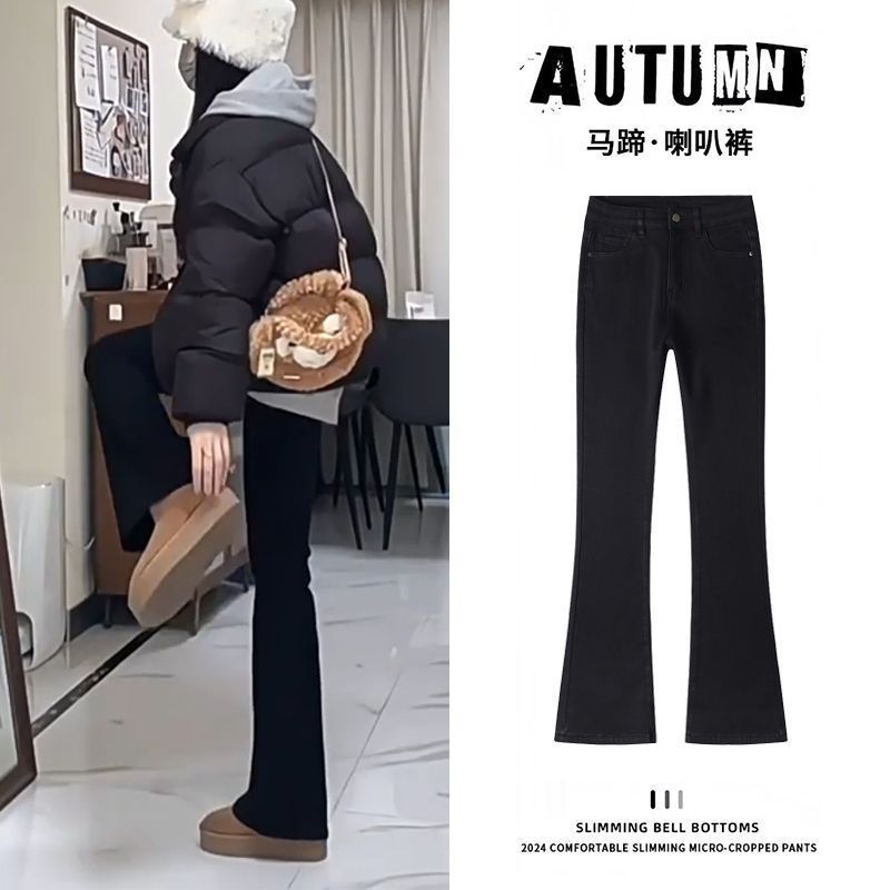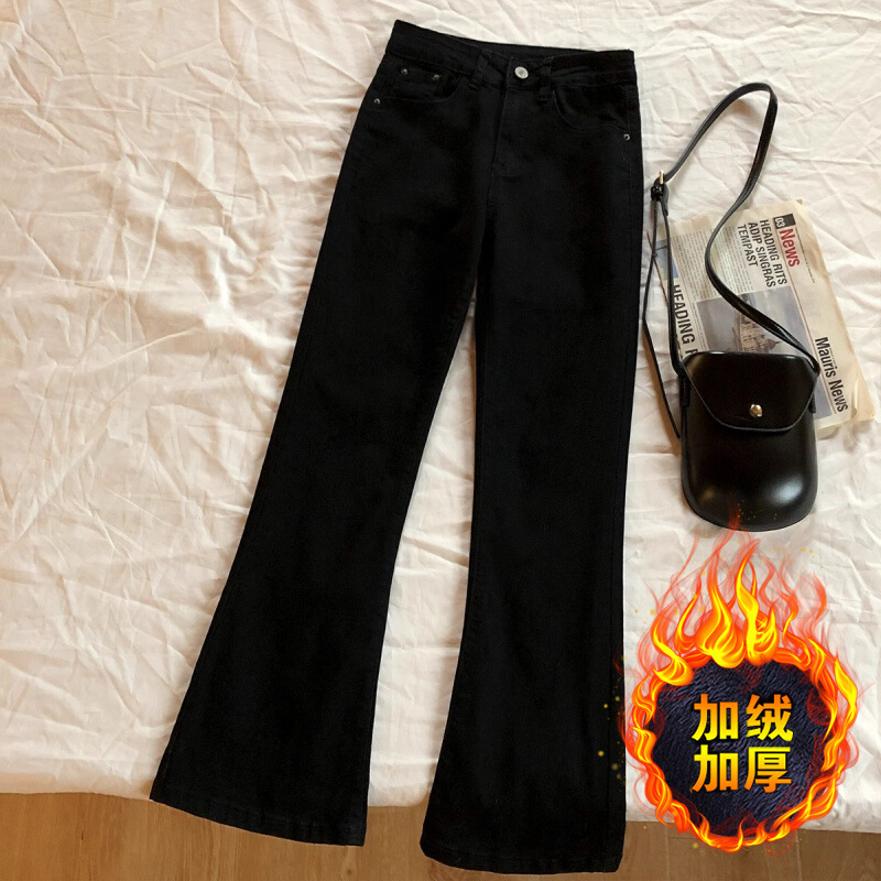 黑色微喇裤秋冬加绒加厚喇叭裤女2025新款高腰牛仔裤春秋马蹄裤子