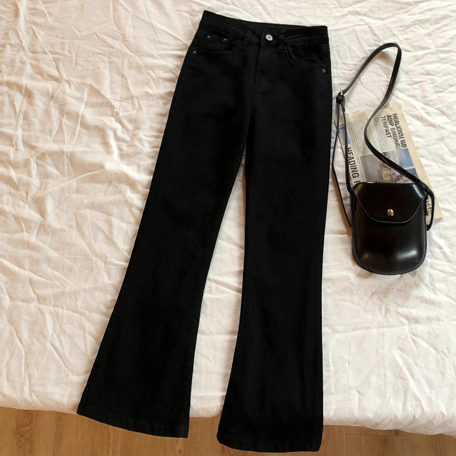 黑色微喇牛仔裤女春季2026新款高腰百搭显瘦休闲弹力小个子喇叭裤