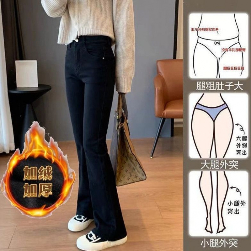 背の低い冬にベルベットをつけて、ミニラッパジーンズの女性の背の高い腰の高い街の学生ズボンを厚くする