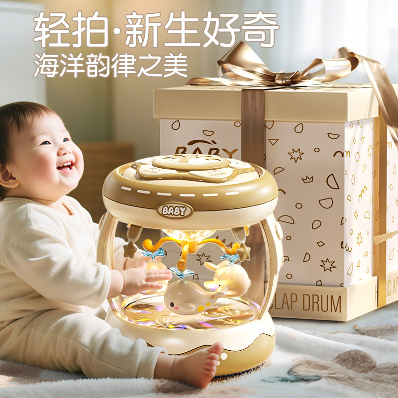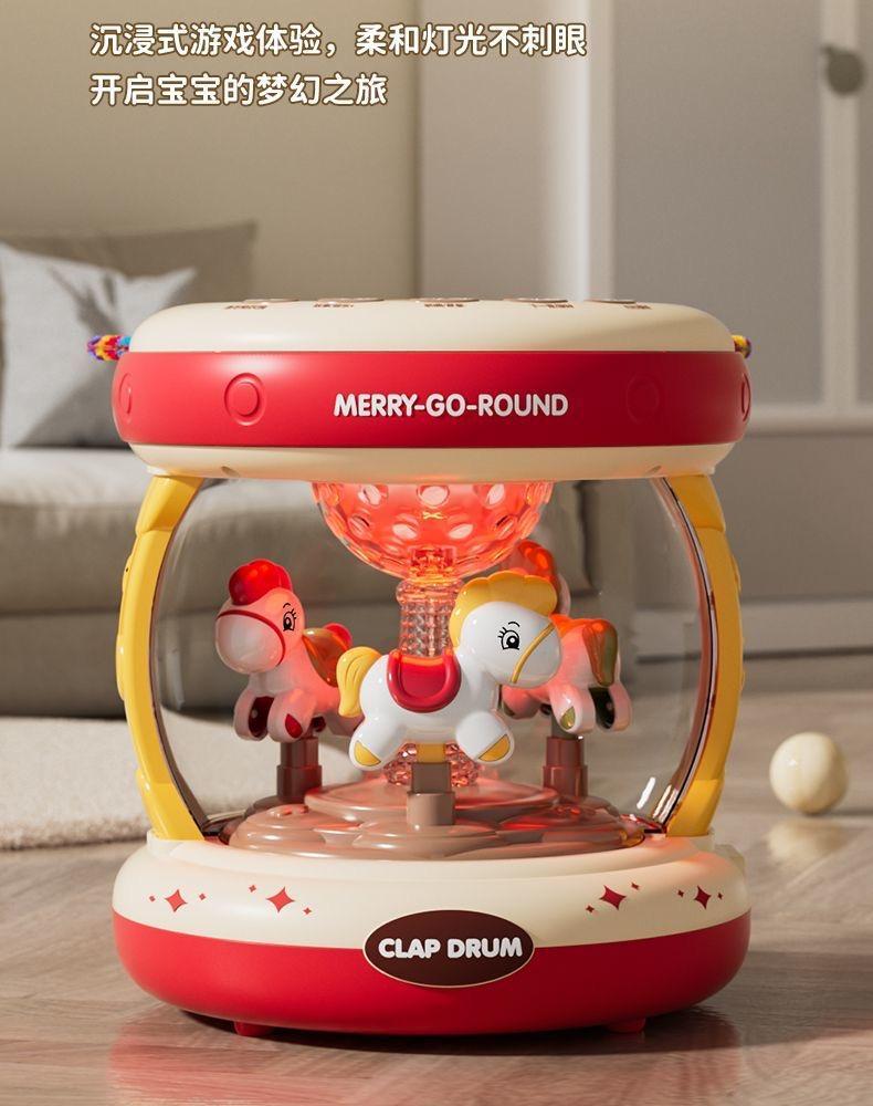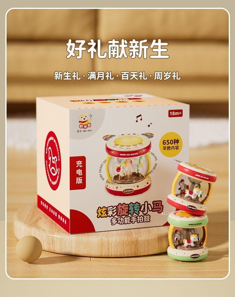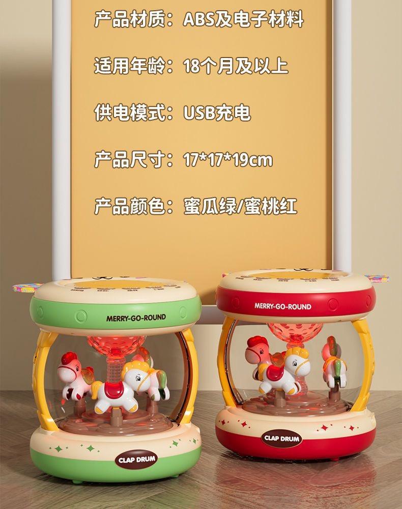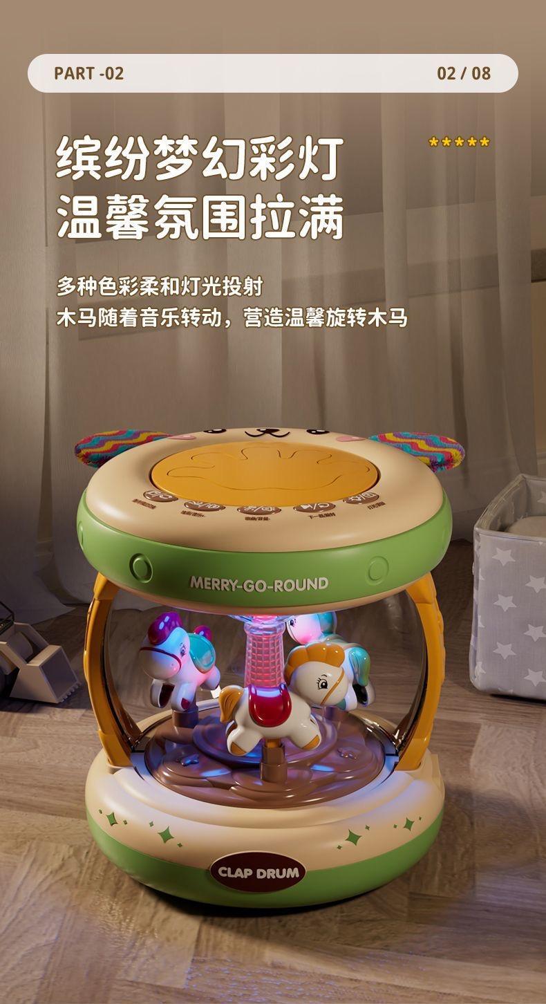 新生幼儿婴儿旋转木马满月宝宝周岁礼物儿童早教音乐手拍鼓玩具