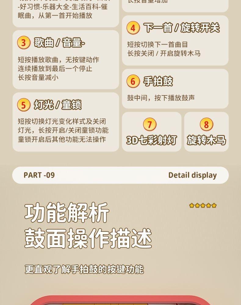 668 早期教育コンテンツ [レッド - カルーセル パットドラム] リチウム電池バージョン,668 早期教育コンテンツ [グリーンカルーセル パットドラム] リチウム電池版