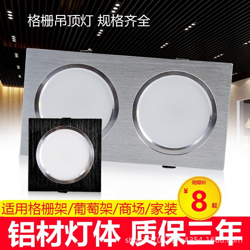 LEDグリルライトダブルヘッド三頭角型ダウンライトメッシュグレープフレームアルミ埋め込み式商用コブライト