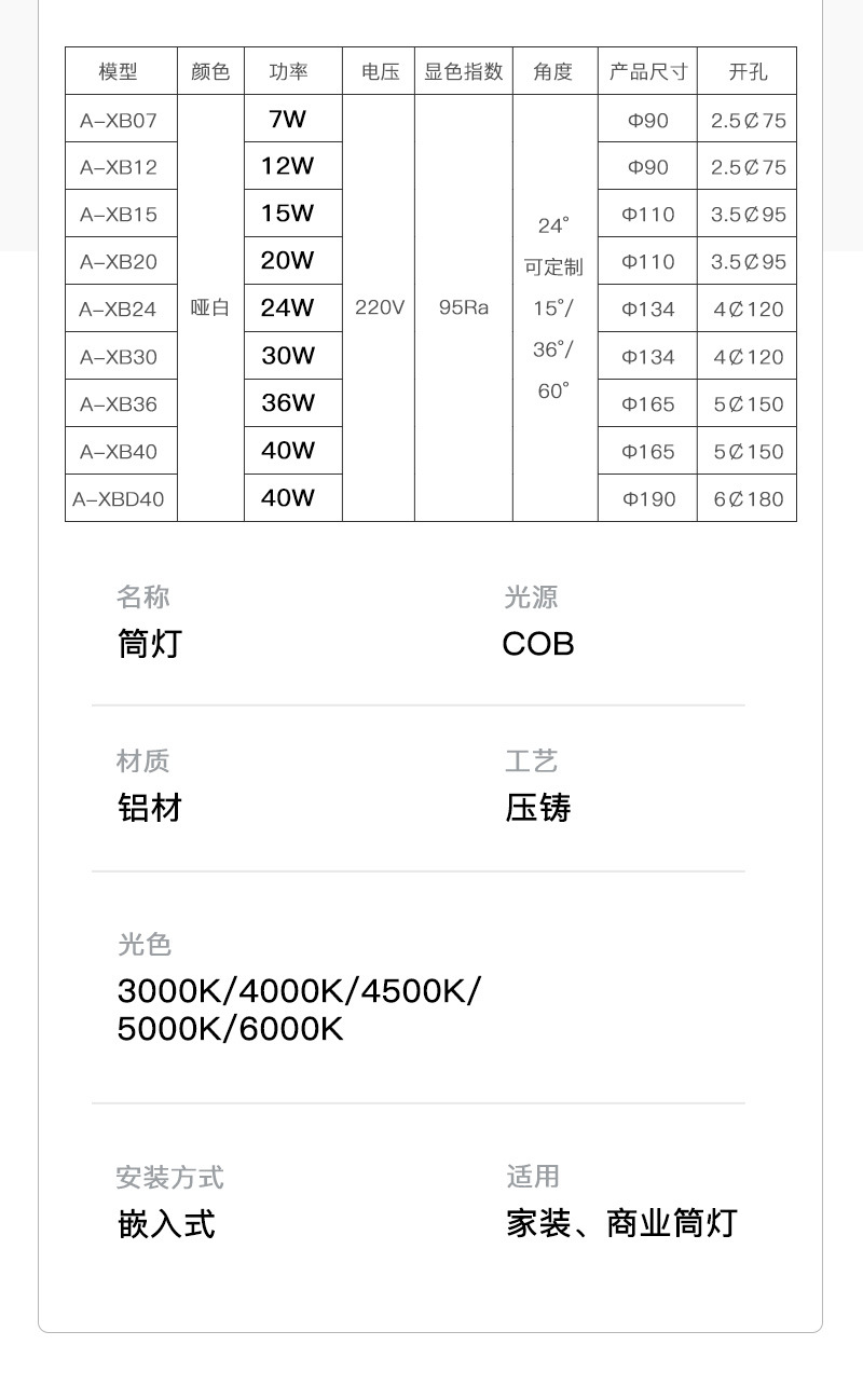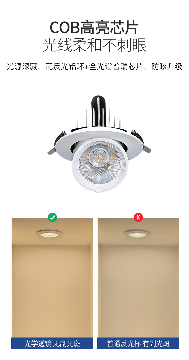 埋め込み型COBダウンライト防グレア服店専用高顕色ホールライトデパート超明るい天井ダウンライト