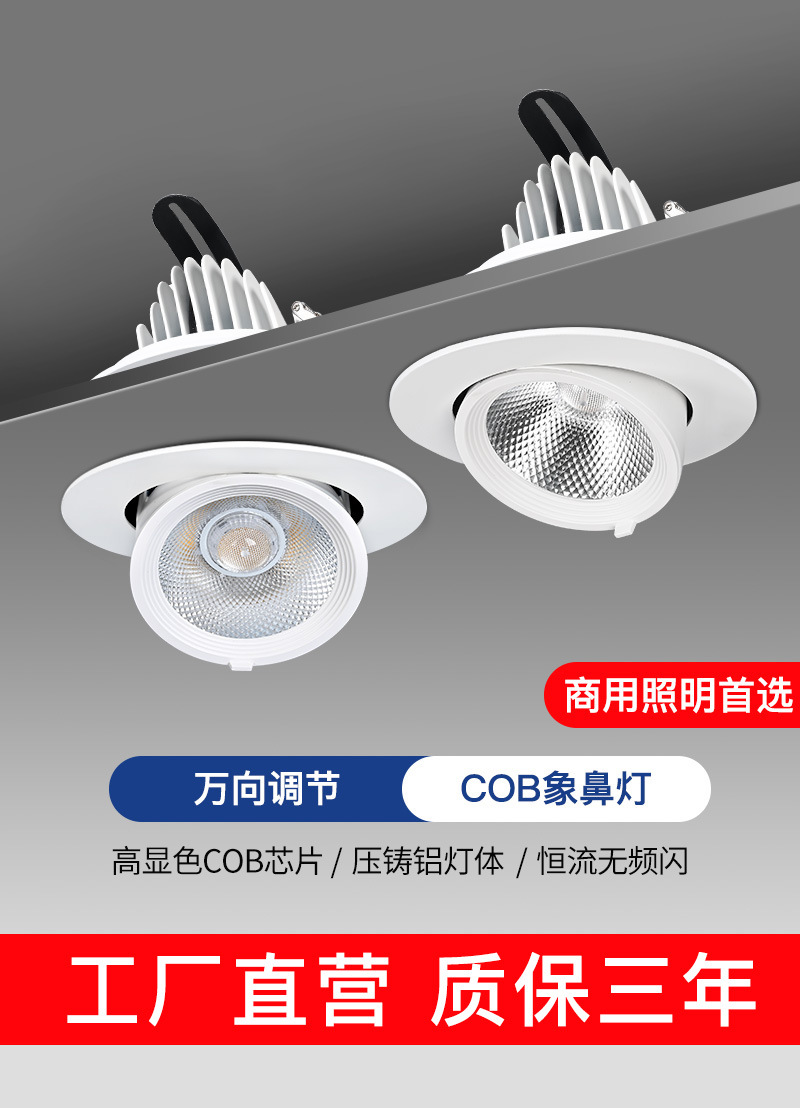 コブ象鼻灯led洗壁スポットライト埋め込み式天井灯家庭用リビングルーム調整可能角度ダウンライト店舗業務用