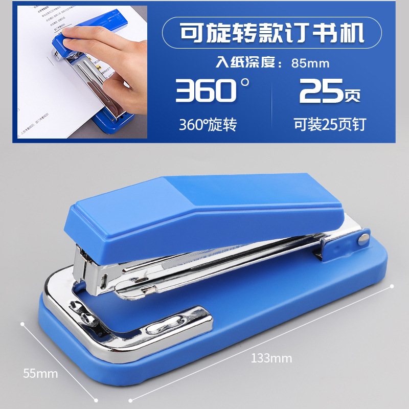 得力0434-C旋转订书机钉作业本中缝用360度渐变色订书办公装订机