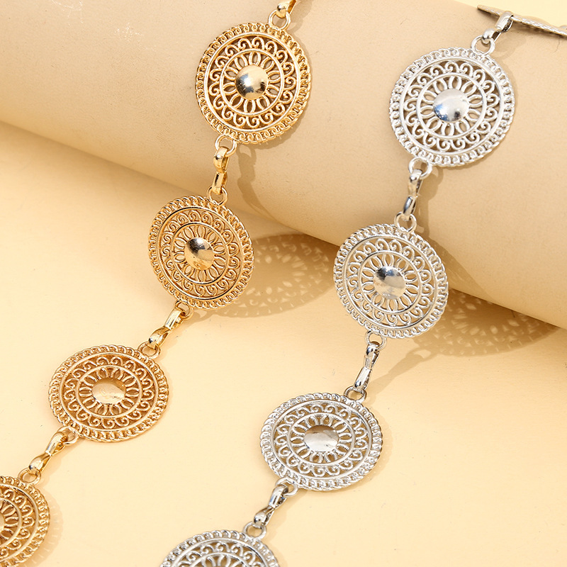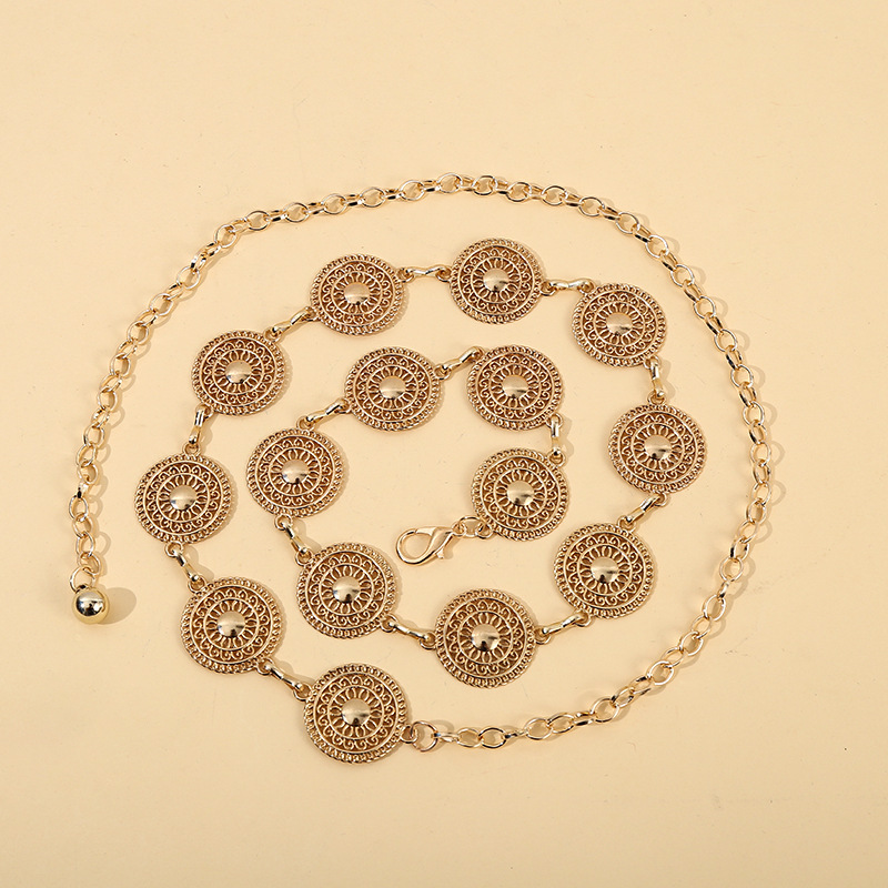 国境を越えた人気のヨーロッパとアメリカのラウンド中空金属シートレディースウエストチェーンファッショナブルでシンプルなドレスアクセサリーレディースウエストアクセサリー