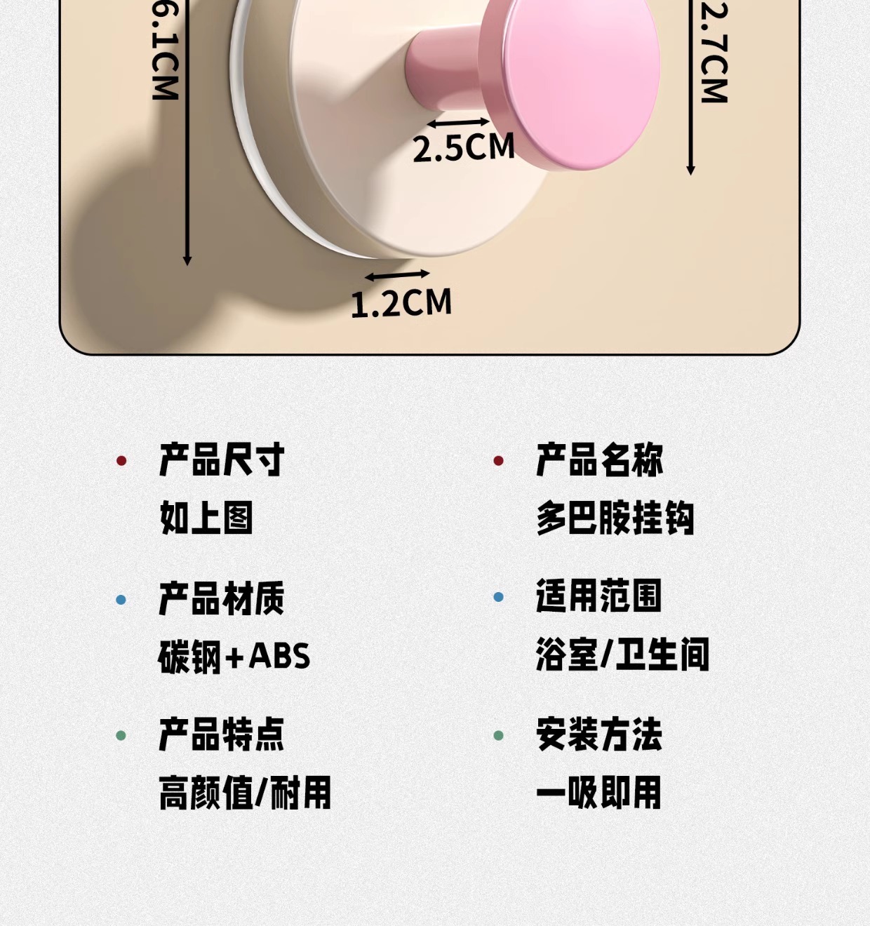 多巴胺吸盘挂钩强力承重粘胶免打孔入户门口放钥匙帽子钩厂家批发