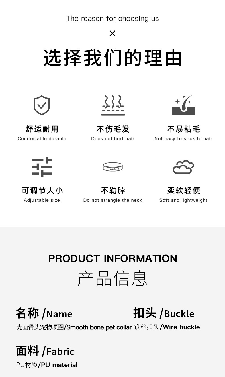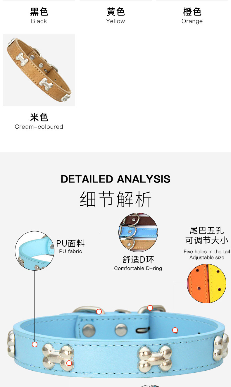 越境ペットの首輪PU革の骨の首輪は犬の首輪を調節できます。