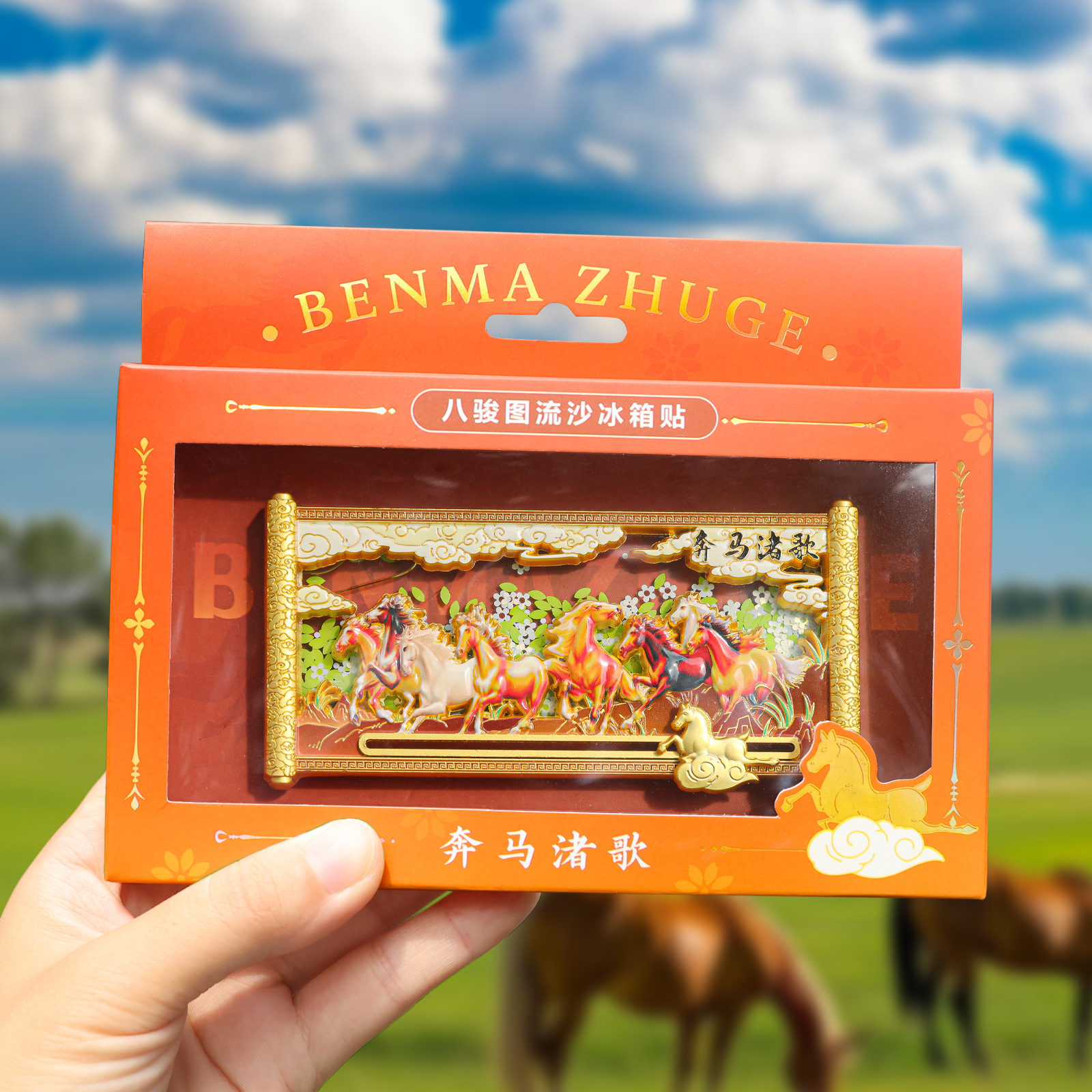 秦始皇奔马渚歌冰箱贴高档金属流沙冰箱装饰贴八骏图流沙冰箱贴