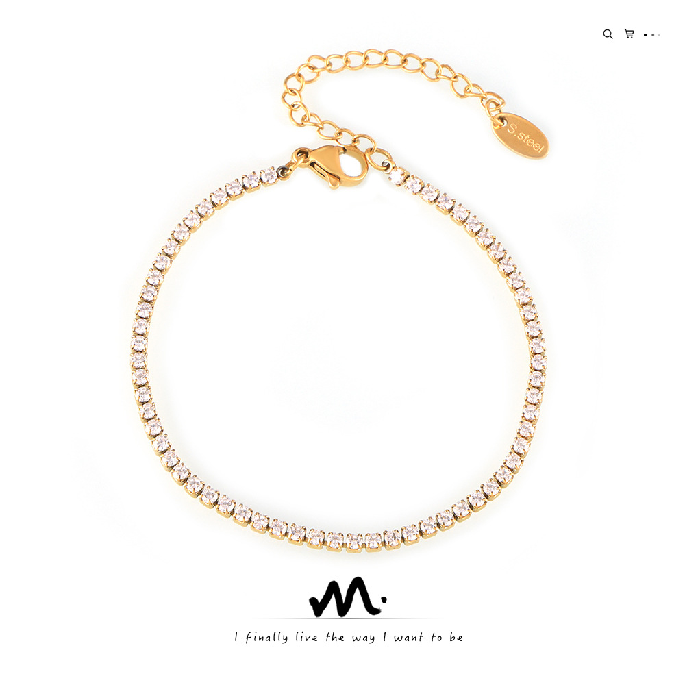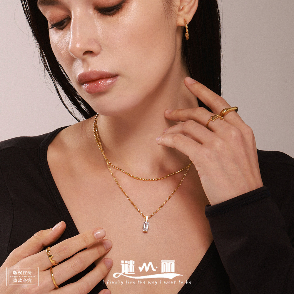 謎麗長方形ジルコン米珠多層鎖骨ネックレスステンレスPVDメッキ18k真金デザイン感首鎖女