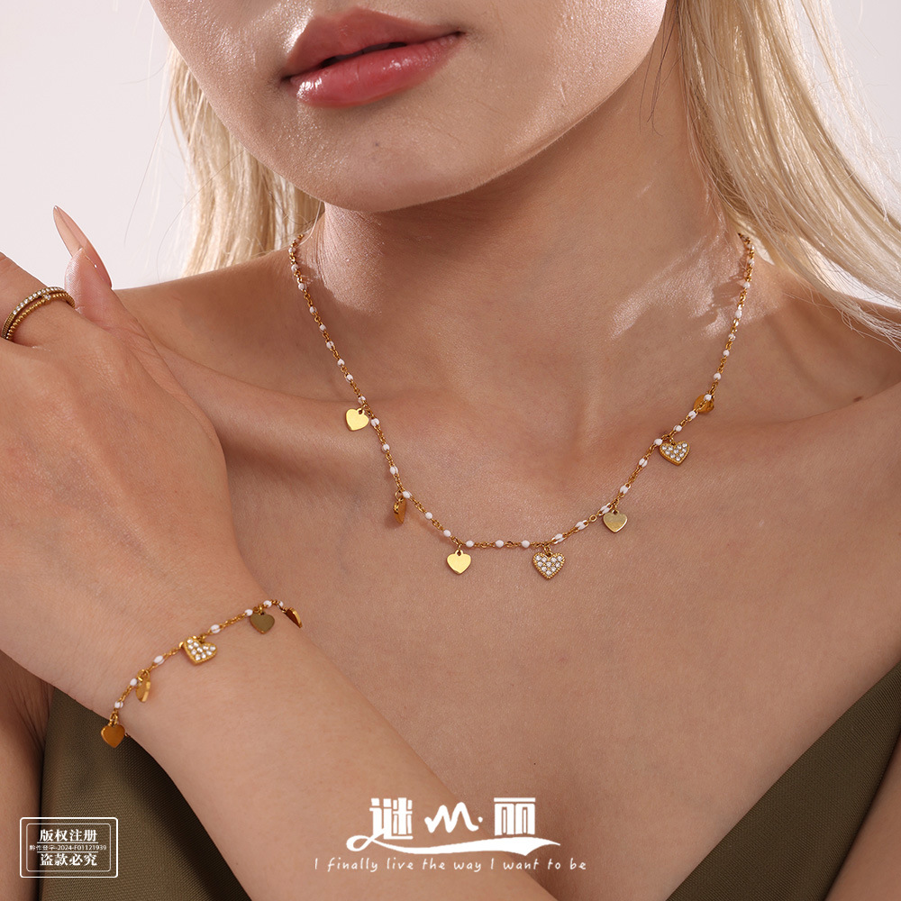 韓系甜美風個性百合桃心ネックレス女性大衆デザイン愛ブレスレットチタン鋼金メッキジュエリーセット