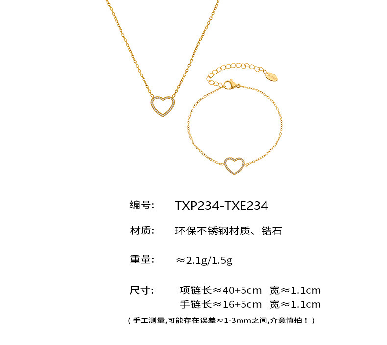 TXP234-ゴールデンラブジルコンネックレス 40+5cm,TXP234-スチールカラーラブジルコンネックレス 40+5cm,TXE234-ゴールデンラブジルコンブレスレット 16+5cm,TXE234-スチールカラーラブジルコンブレスレット16+5cm,P873-ゴールドクロスクリップビーズチェーン Sスタイル 40+5cm,P873-スチールカラークロスクリップビーズチェーン Sスタイル 40+5cm