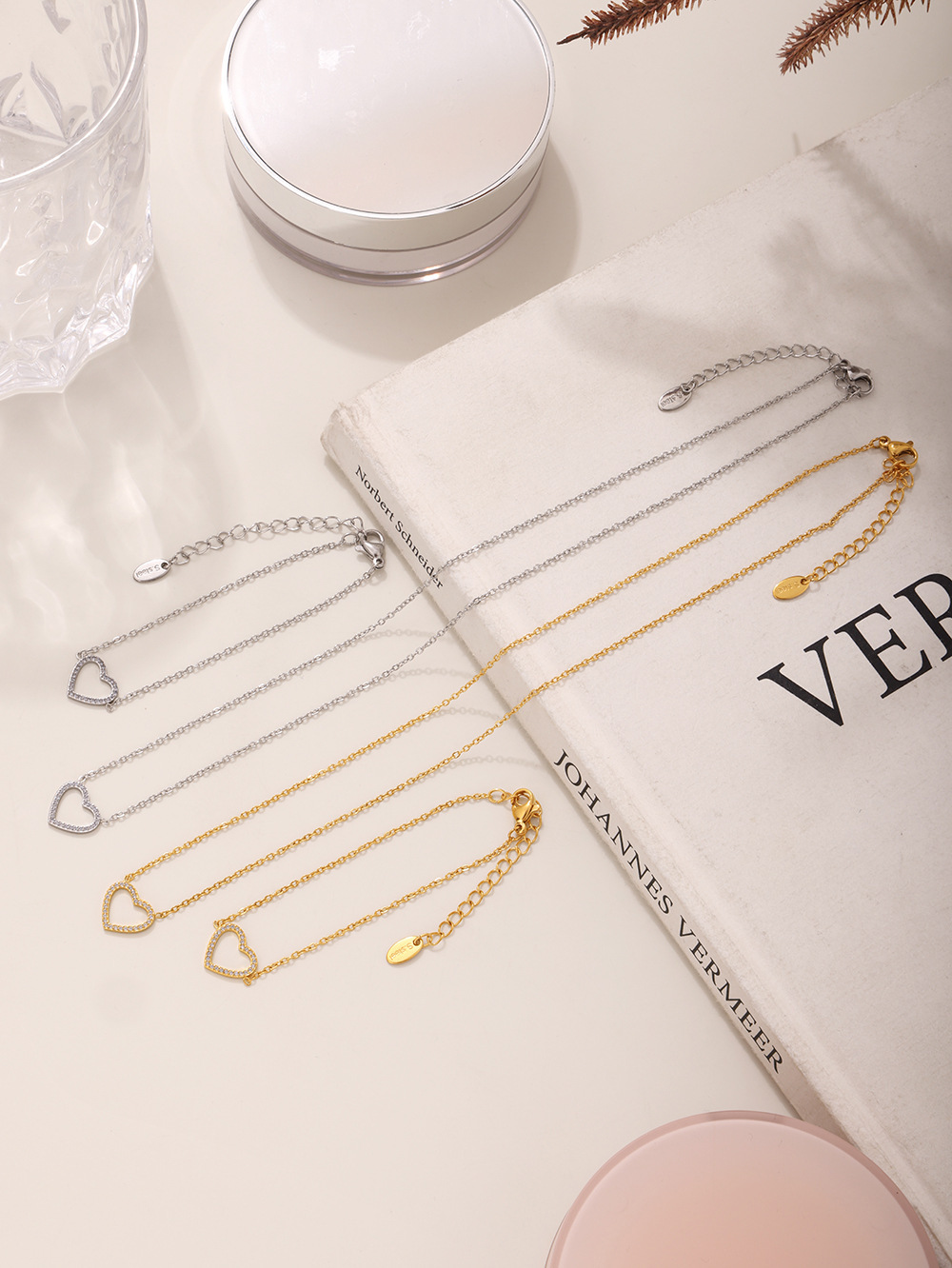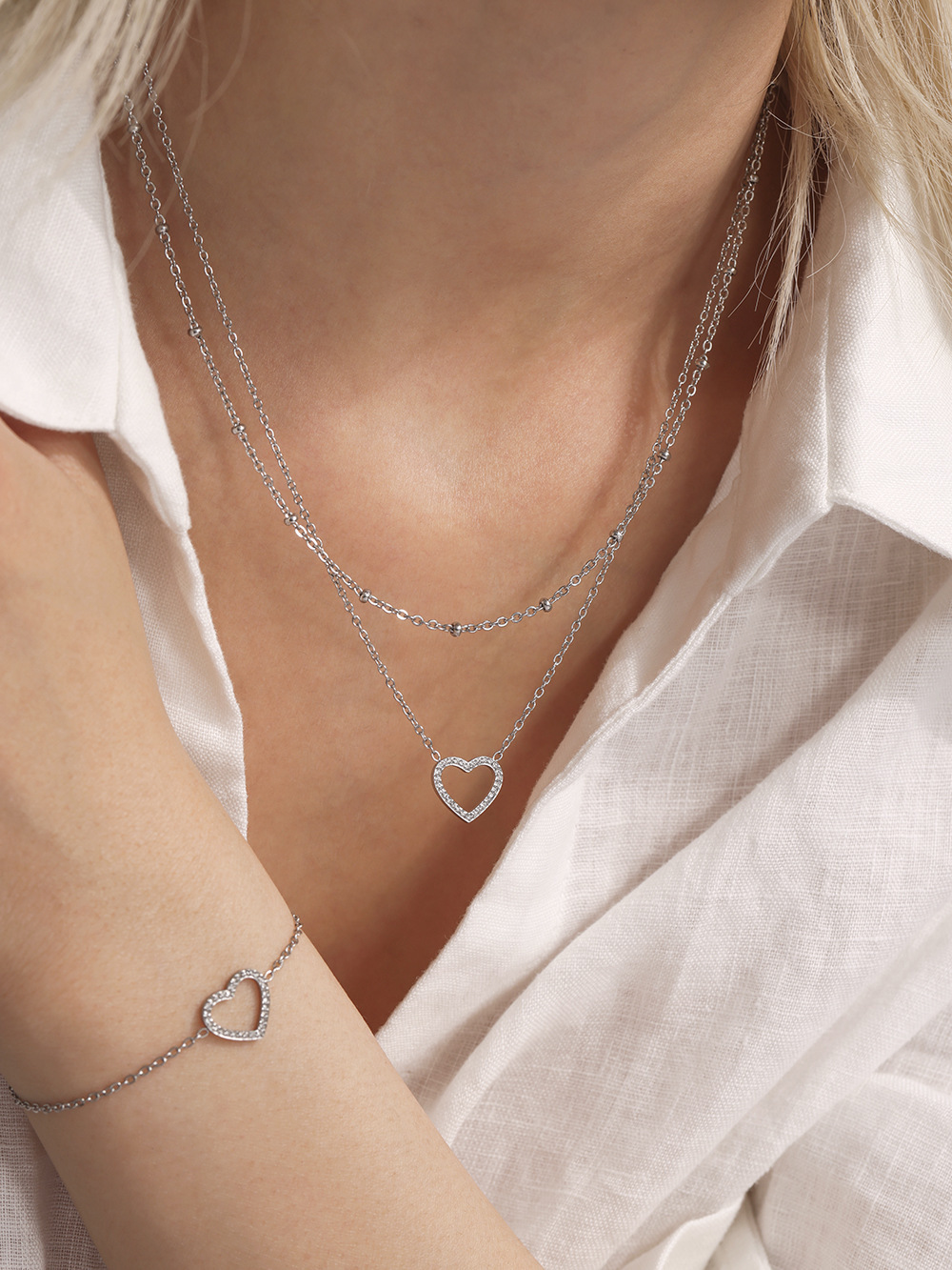 謎の美しいステンレスのドリルの愛のジルコンの2層の精巧な鎖骨のネックレスは色の質感のブレスレットの大衆のスーツを落とさないでください。