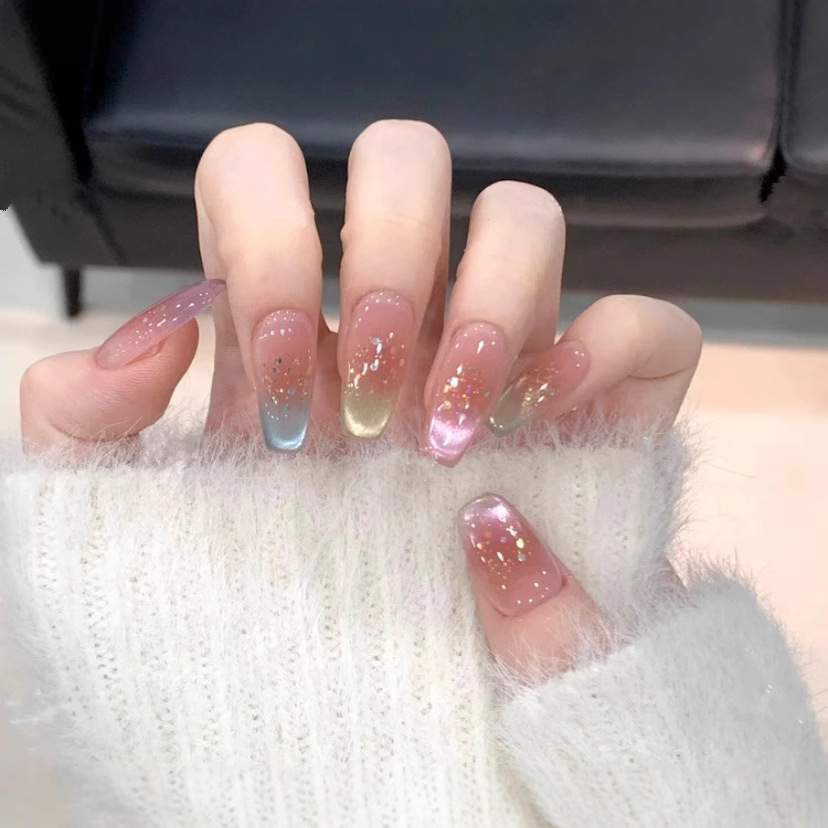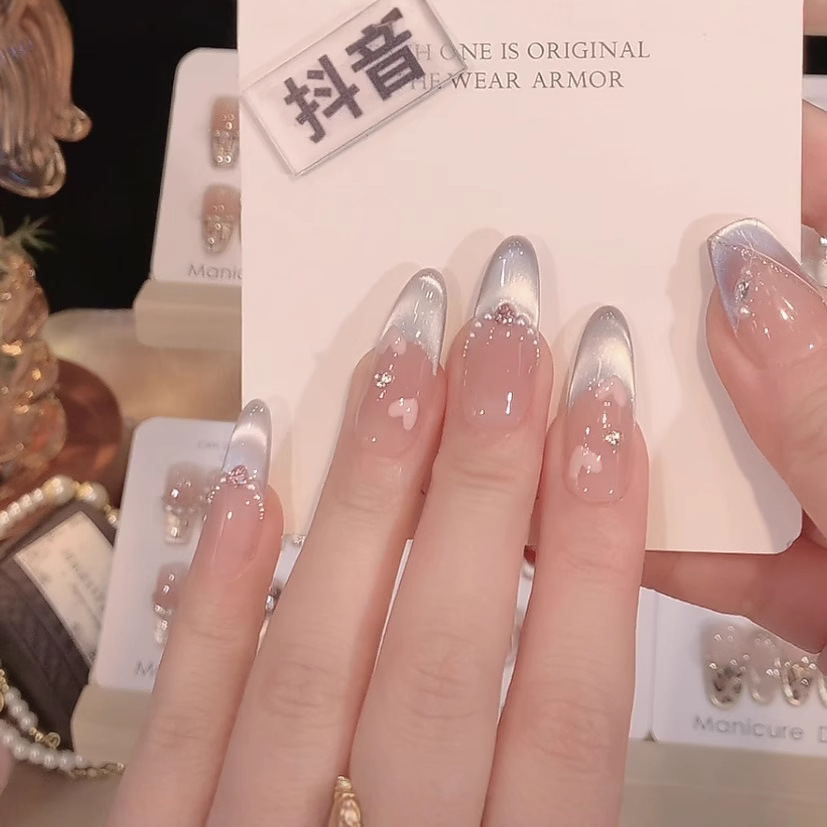 【元気虹】新作春夏純欲気質フランス猫眼純手作り甲高級顕白ネイル