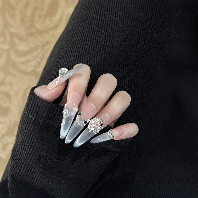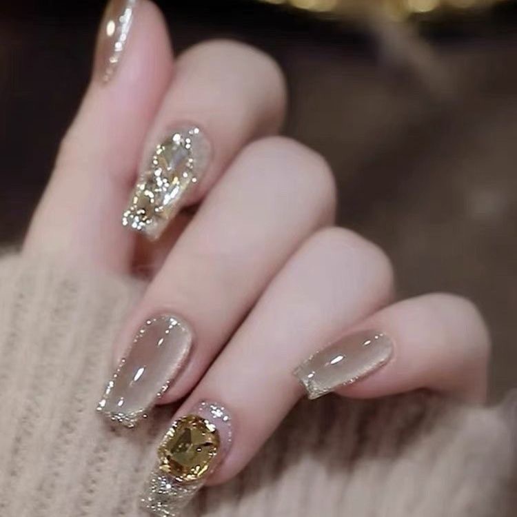 [クリームバニー] 新しいライトラグジュアリーハンドメイドウェアラブルネイルハイエンドキャットアイ多用途ハイエンドハンドメイドネイルアートパッチ