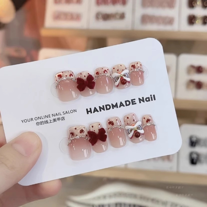 【新心悦醒狮】新款纯手工穿戴甲醒狮款高级显白纯手作美甲10片装