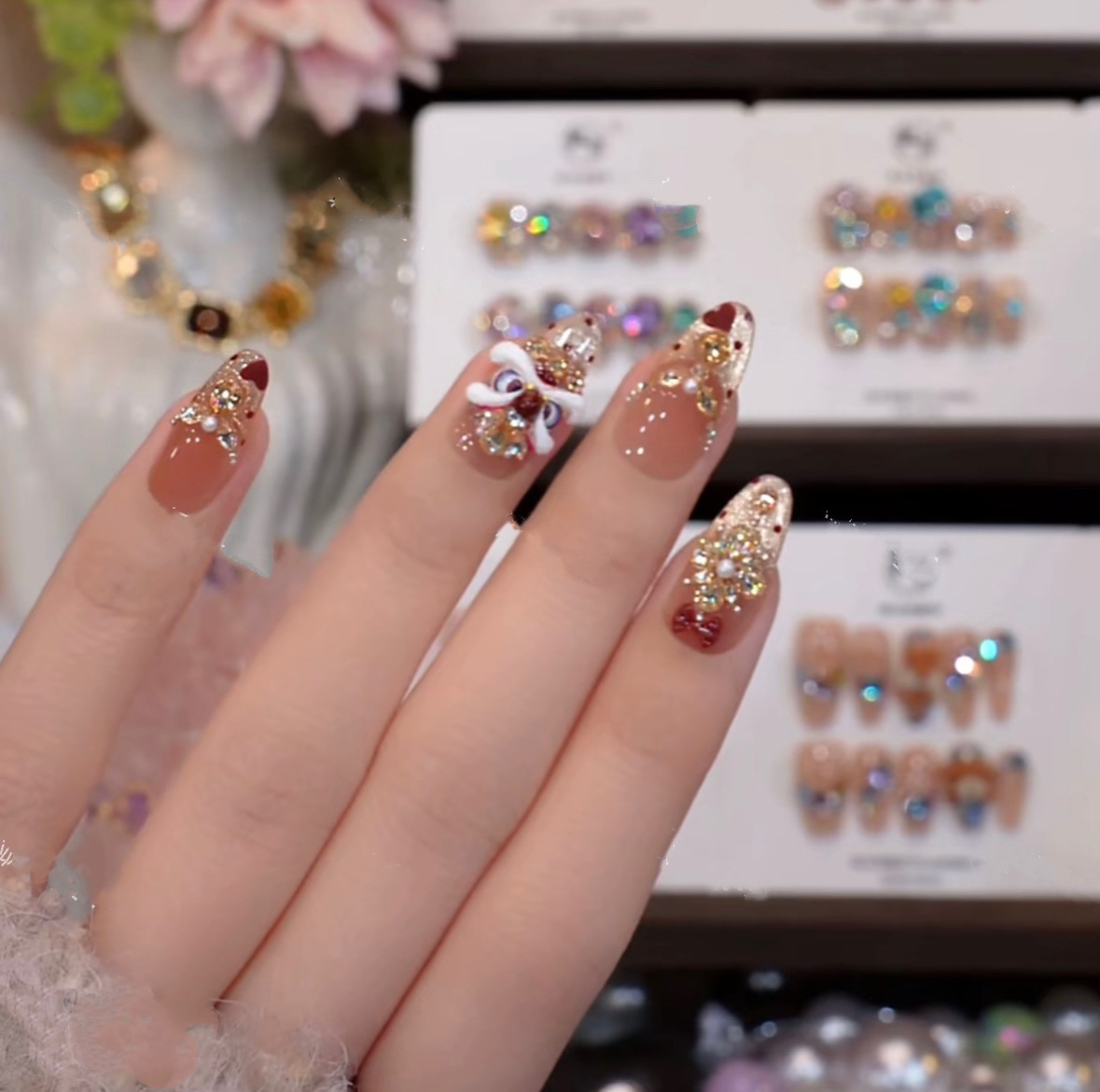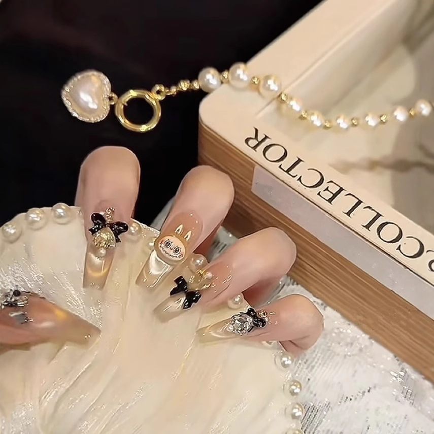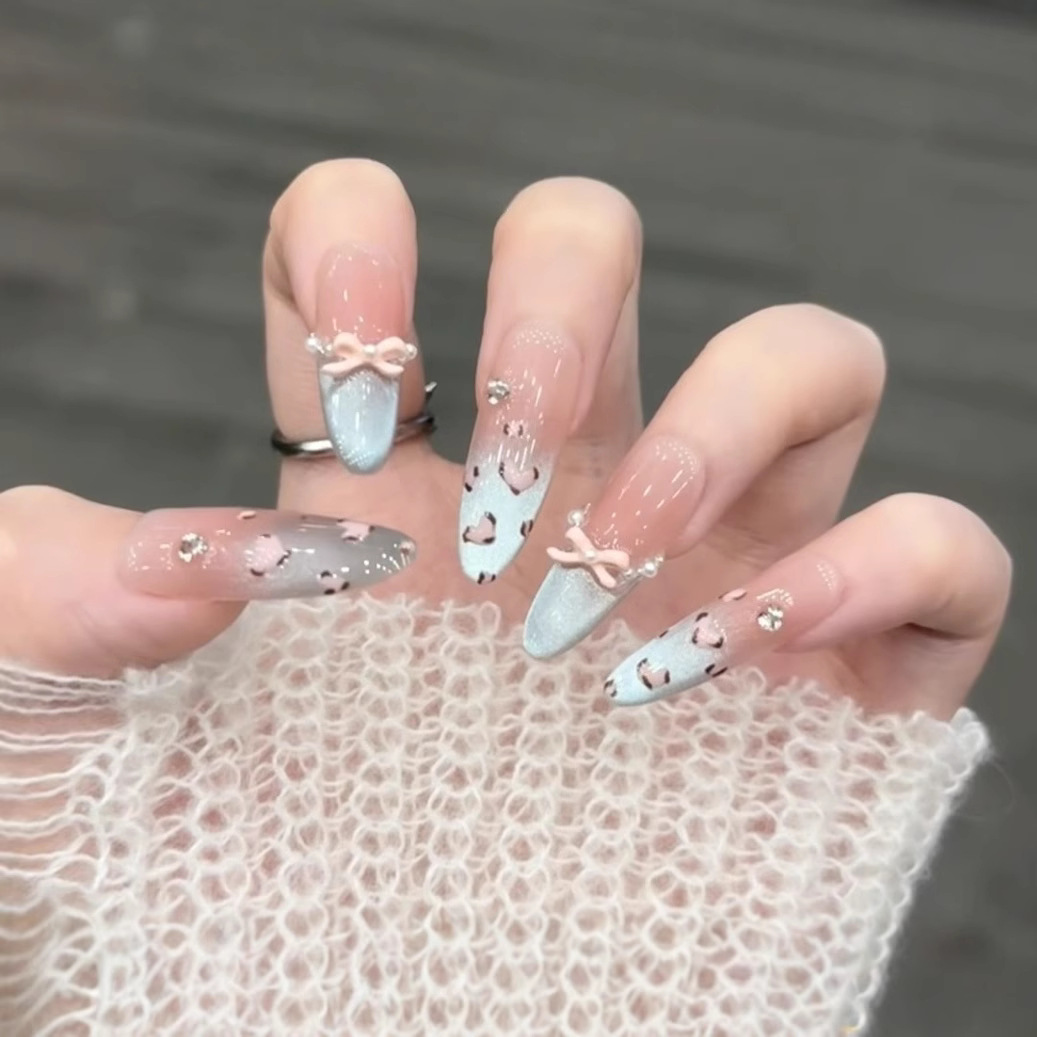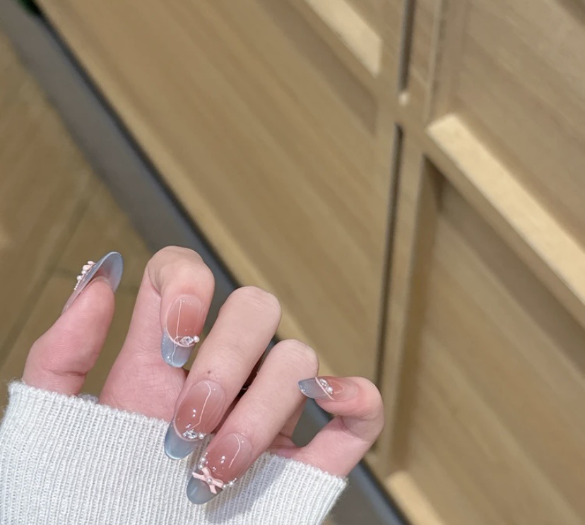 純粋な手作業で甲のネイルアートを着て、蝶のリボンの雰囲気が現れます。