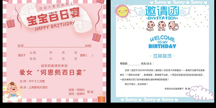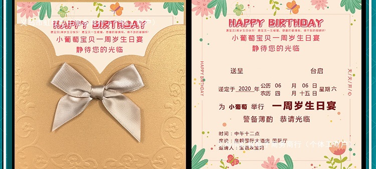 オリジナル誕生日満1歳宴会招待状赤ちゃん百日弥月招待状漫画紙製印刷招待状卸売り