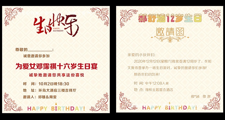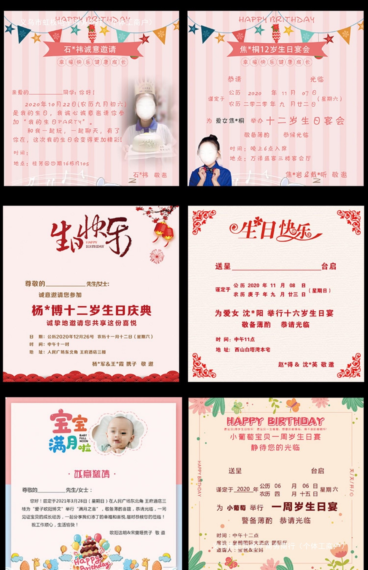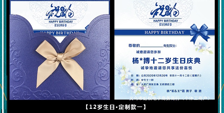 12十岁儿童生日派对邀请函定 制男女孩满月周岁请贴百日宴请柬卡