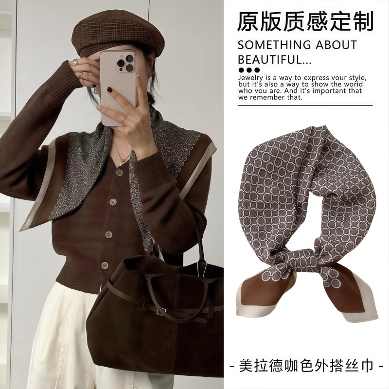 秋冬美拉德咖色丝巾女外搭复古秋季披肩方巾配饰新品轻奢高级颈饰