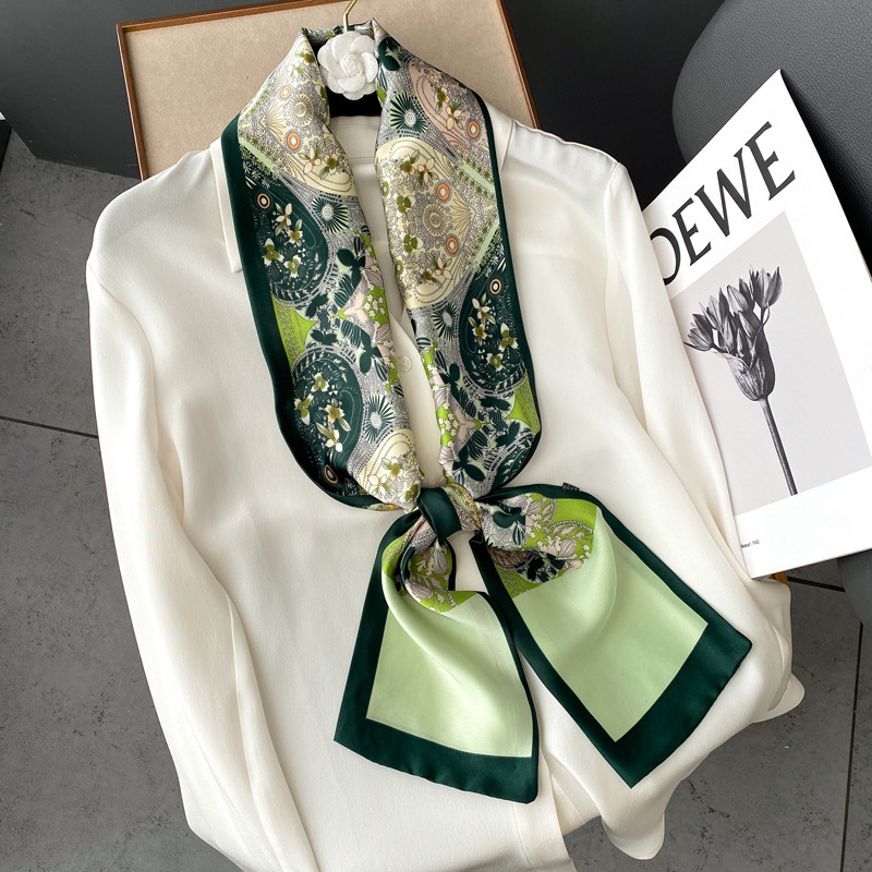 フレンチレトロ風花柄シルクスカーフ、新作多用途ネックタイ、バッグハンドル装飾、おしゃれなヘアバンド、リボンアクセサリー