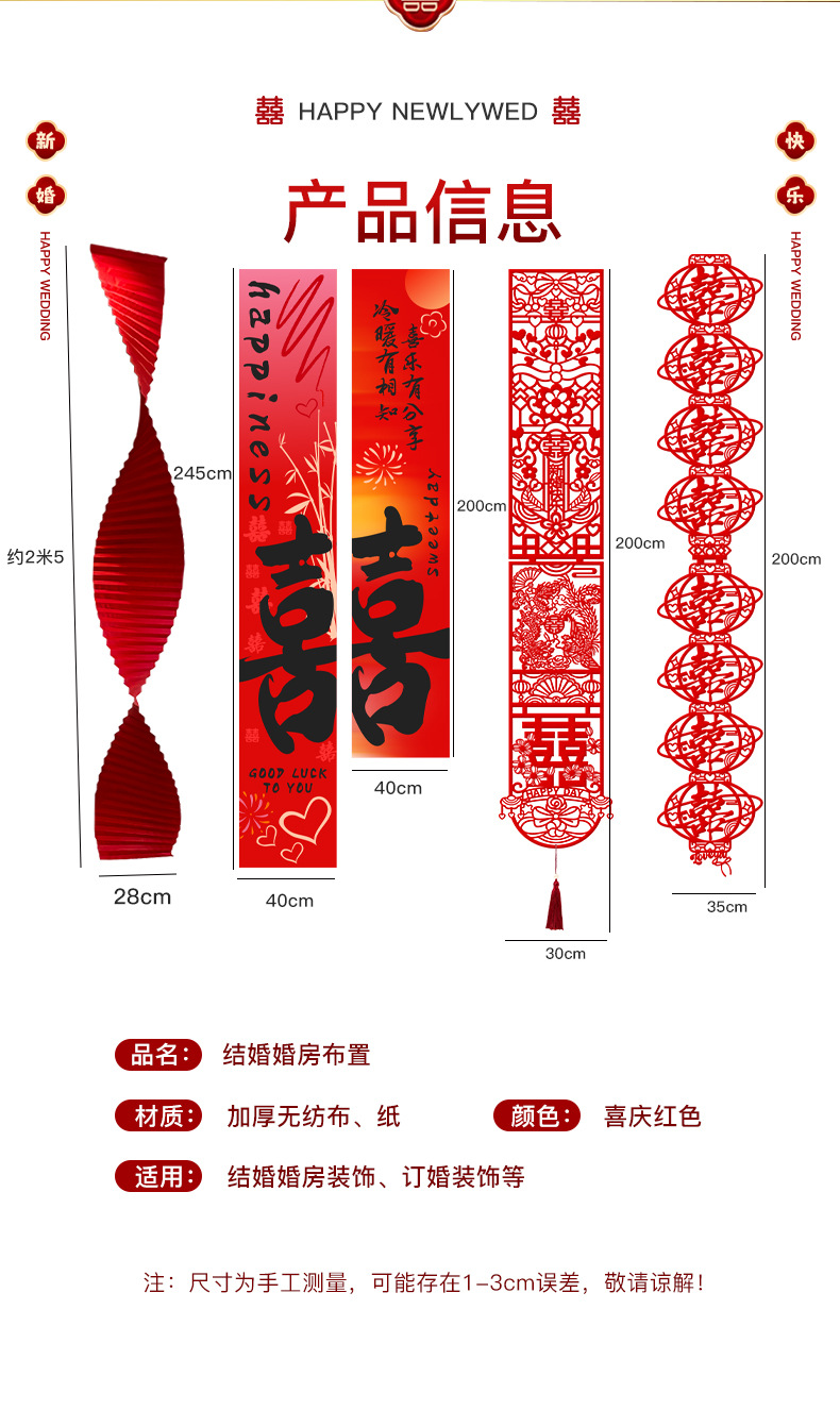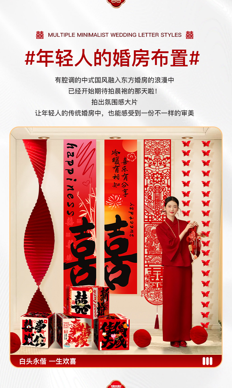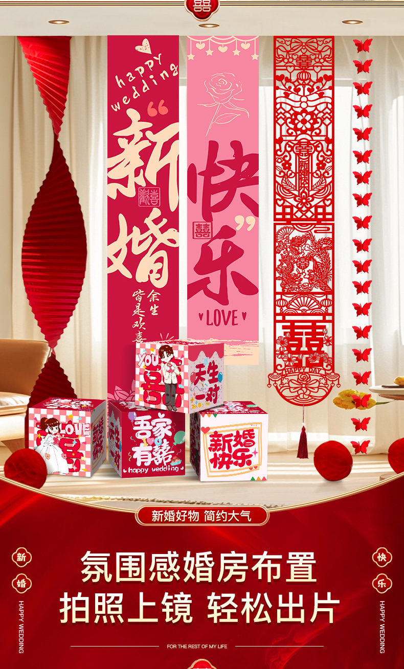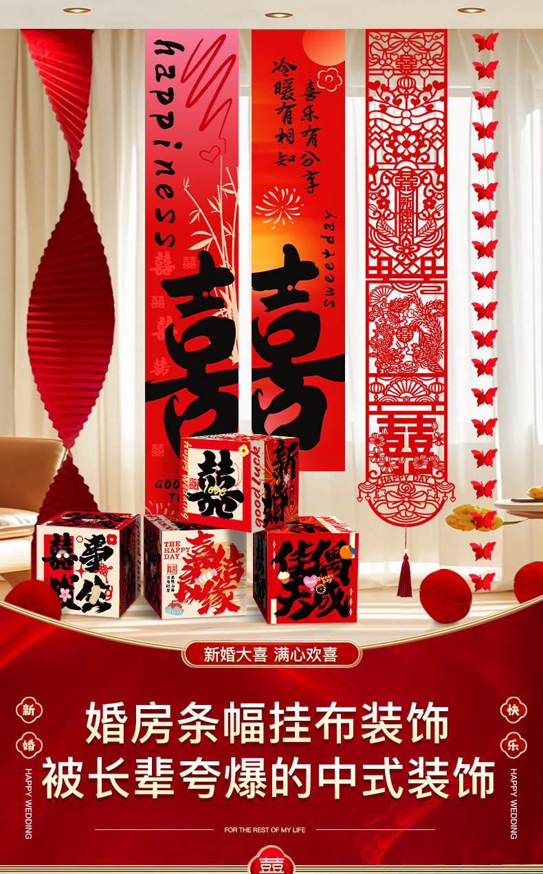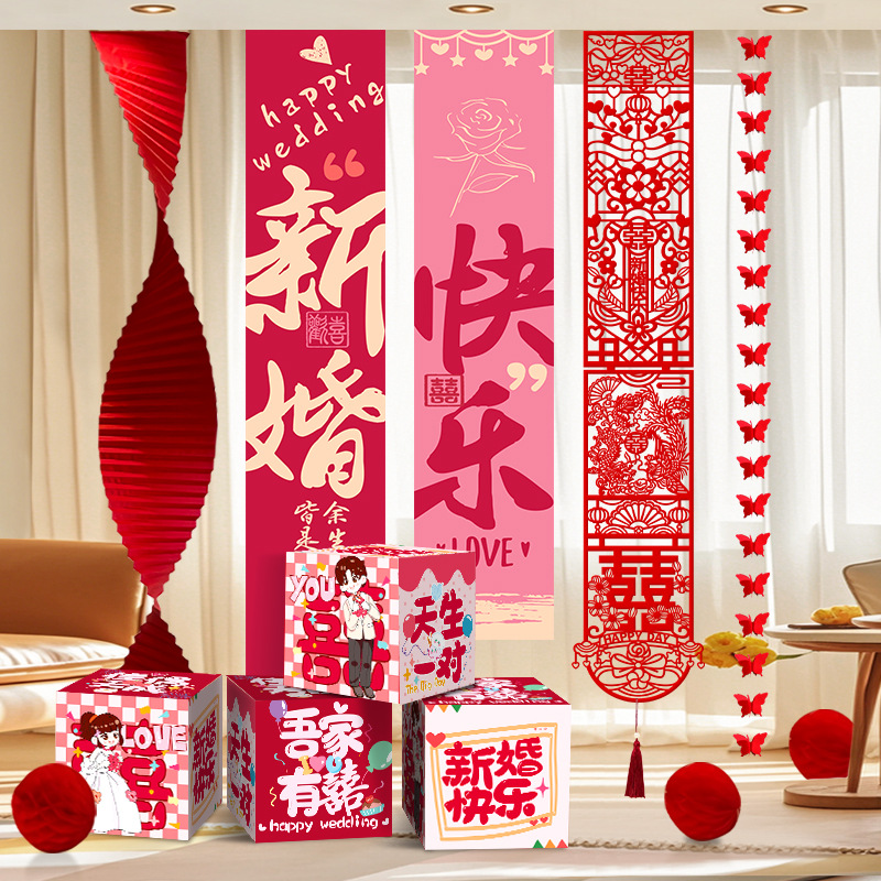 長喜の字の結婚の部屋の配置の喜の字は長い字を貼って結婚します。