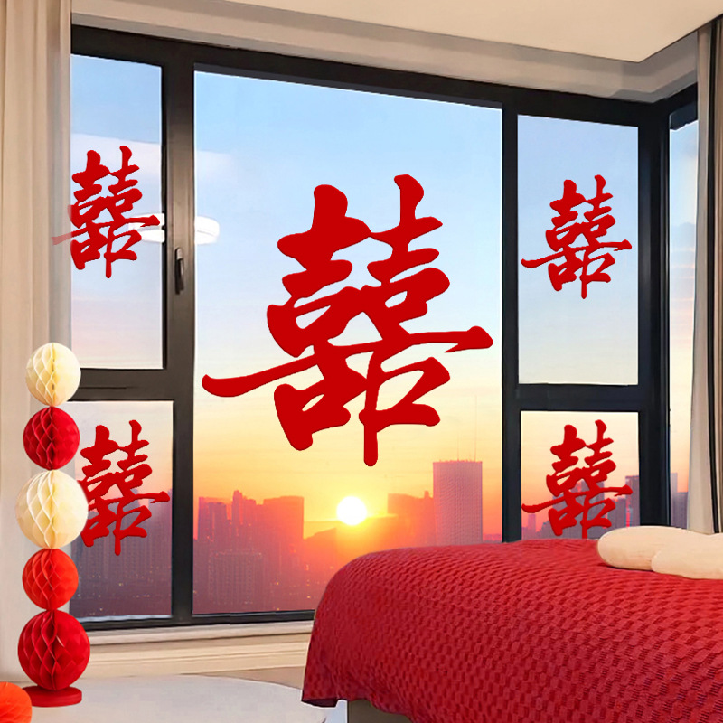喜字は結婚専用の結婚部屋にシール一式を配置して、男女の新しい部屋の窓の婚約装飾をしている