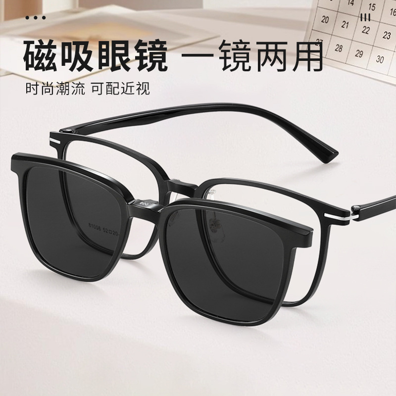 新品スクエアフレームメガネ 近視男性用 超軽量tr90フレーム 紫外線カット偏光レンズ81008 マグネット式サングラス