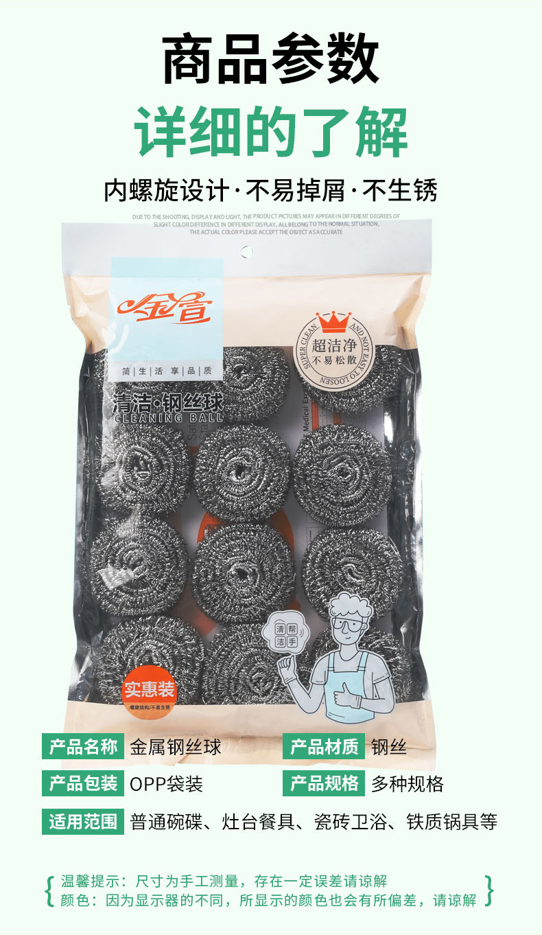 ワイヤーボール洗浄ボールメーカー卸売り単一袋入りワイヤー洗浄ボール家庭用皿洗い汚れ洗浄ワイヤーボール