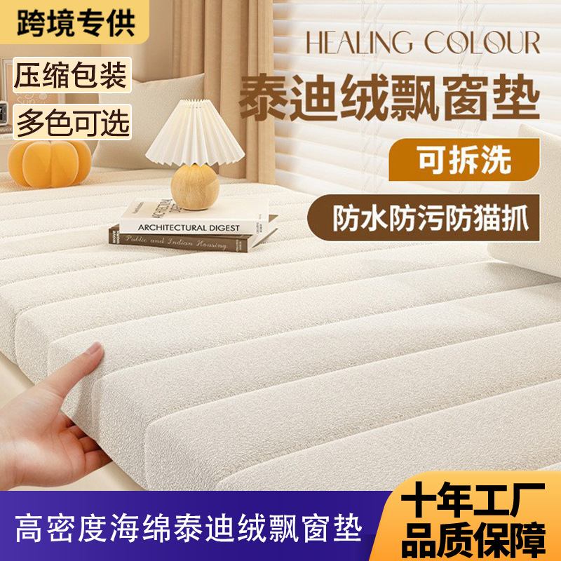 跨境优选泰迪绒飘窗垫防水防污可拆洗高密度海绵坐垫窗台垫