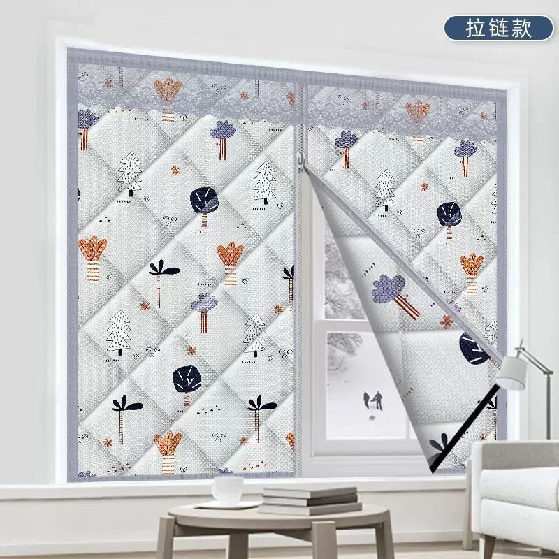 冬季棉窗帘加厚保暖免打孔安装窗户密封膜保温窗帘子拉链款棉门帘