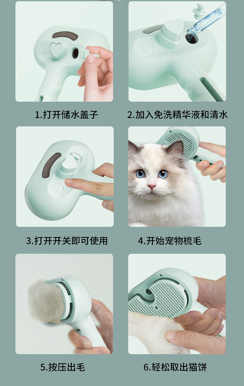 クロスボーダーペットスプレーコームワンクリックスプレーブラシクリーニング脱毛コーム猫と犬スチーム抗飛散電気ペット用品