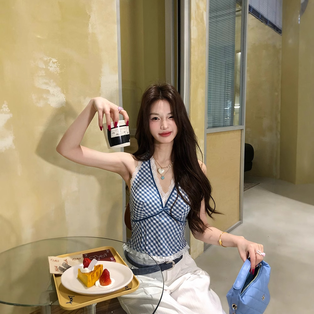 レースは格子をつなぎ合わせて首のサスペンダーのベストを掛けます。女性の夏の大きいサイズの太ったmmは胸のクッションを持っています。
