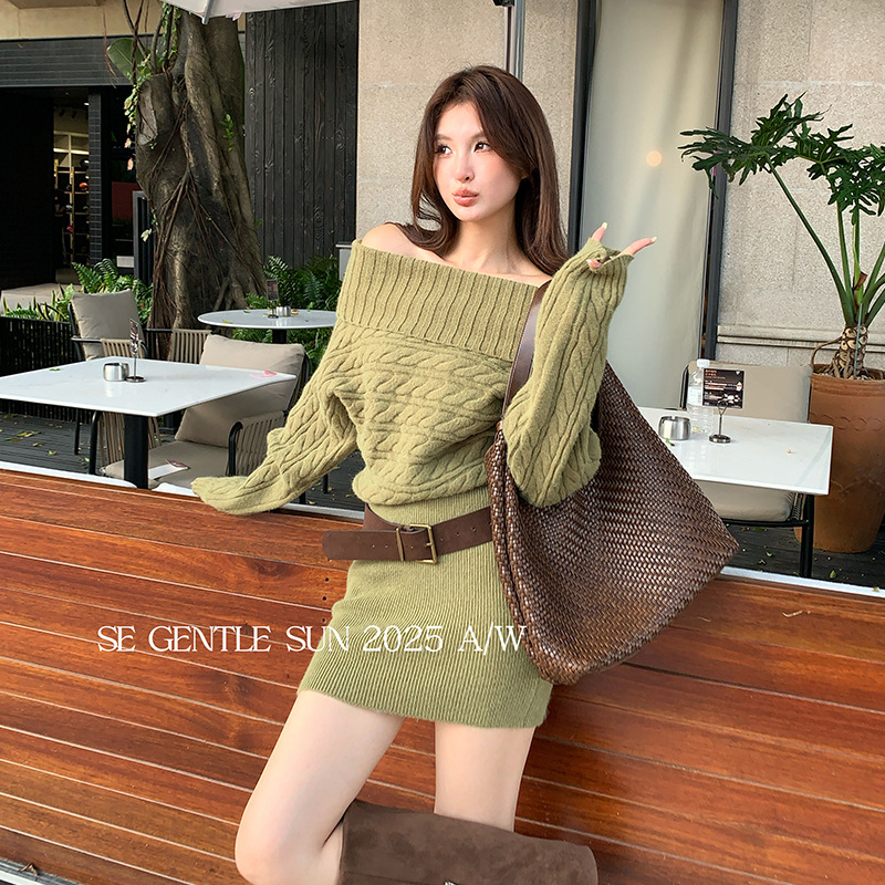 秀熙熙十三行2025冬季气质针织高领连衣裙显瘦高腰短裙子女25533