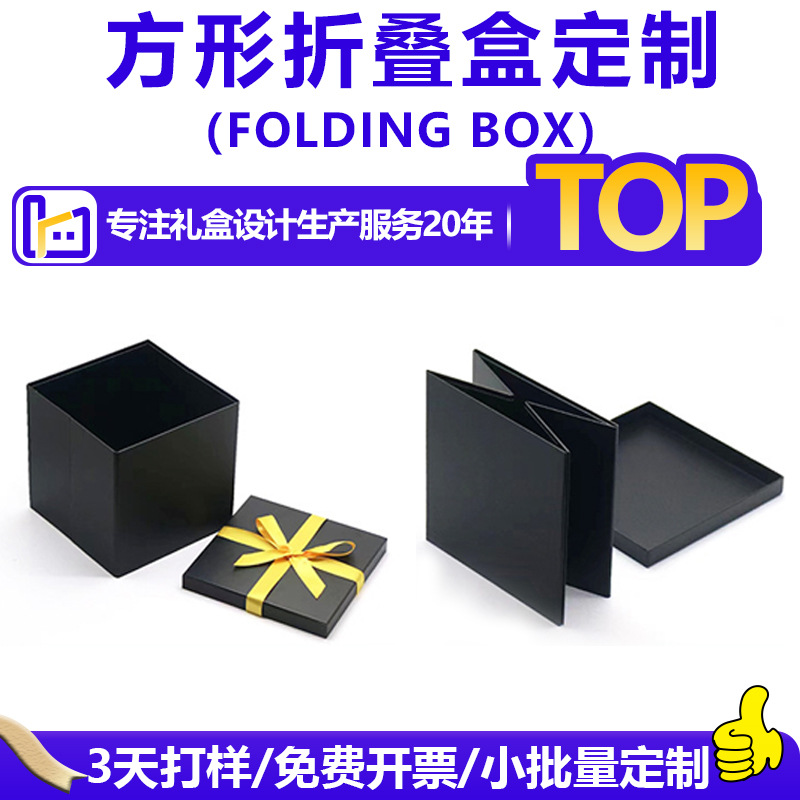 折叠天地盖盒定做logo上下盖立体礼品盒丝带黑色礼品盒包装盒定制