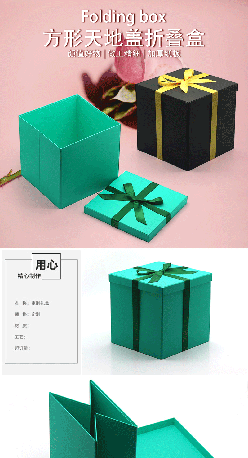多色折叠式天地盖礼品盒一片式蝴蝶结设计礼物包装盒派对首选