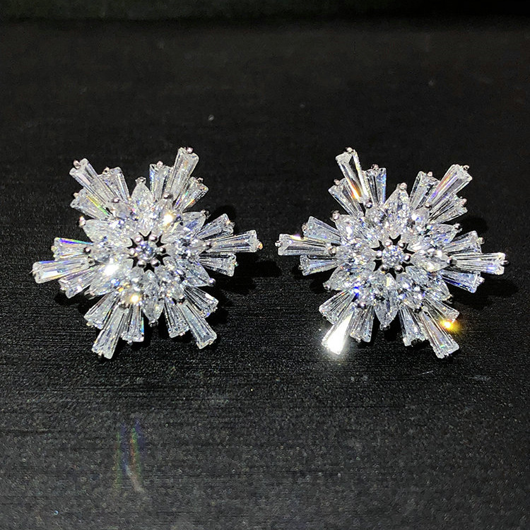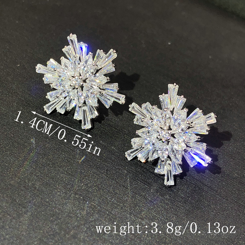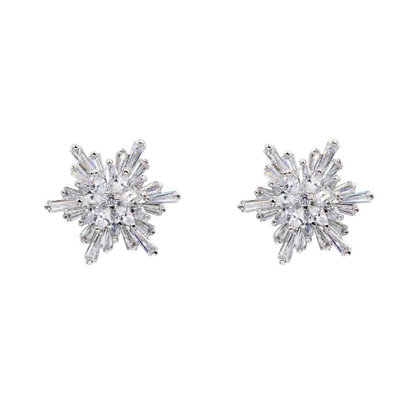 日韓の気質の新型の雪の粒のジルコンのピアスはs 925純銀のイヤリングの甘い耳飾りの淑女のアクセサリーの卸売りに乗ります。