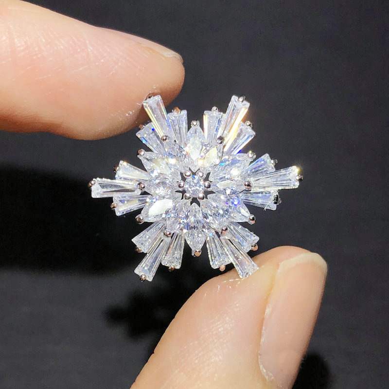 ファッションの雪の花のジルコンのブローチの女性の高級感のスーツの胸の花の襟の針の小さい大衆のハイエンドの防光のボタンは装飾品を配合します。