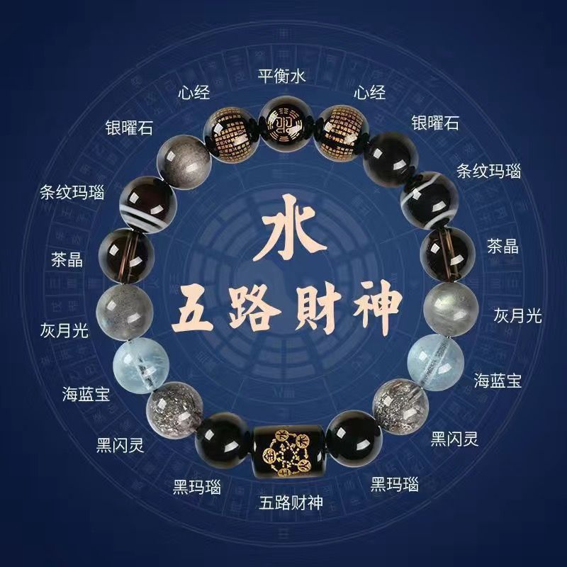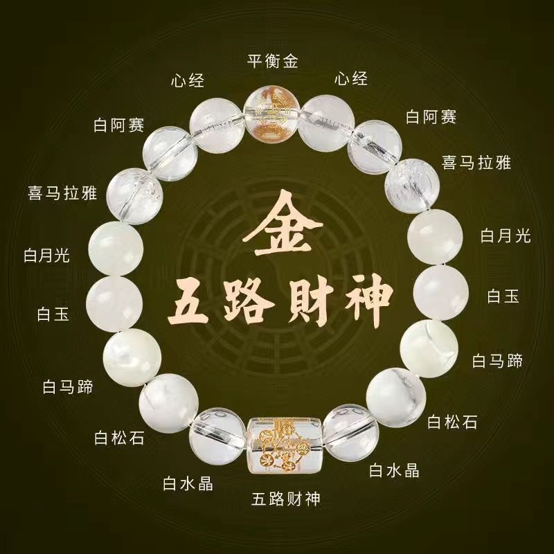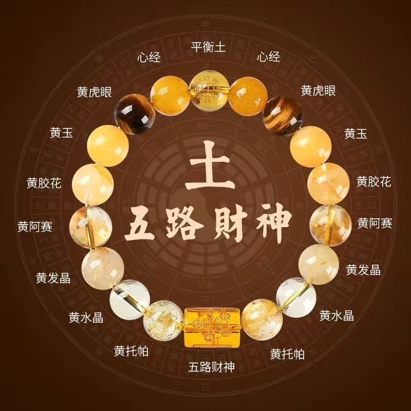 天然水晶五行欠補木喜用木五路財神心経手串金水火土多宝ブレスレット男女