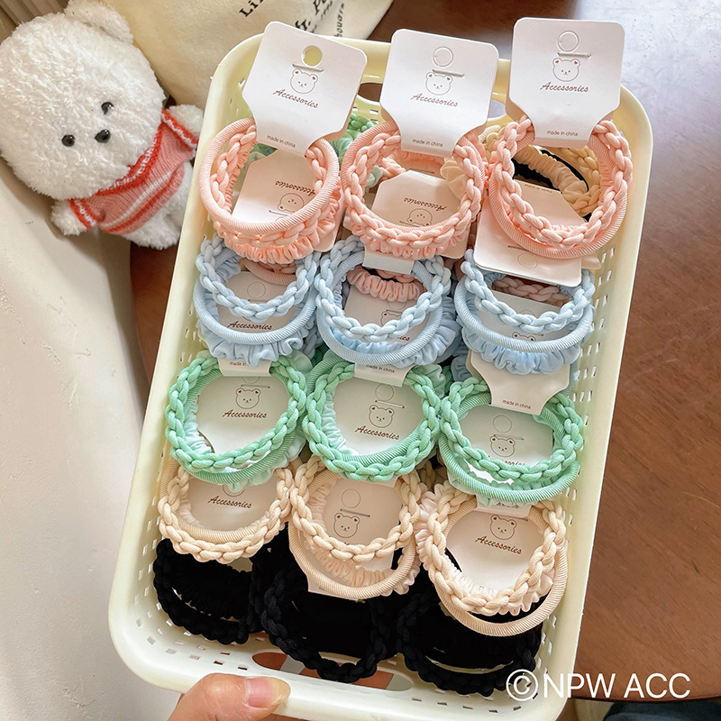 薄い色の花の小腸の3つのセットのシュシュのシンプルな基礎の布芸の頭縄の学生は馬尾の小さいサイズの腸の輪を刺して髪を飾ります。