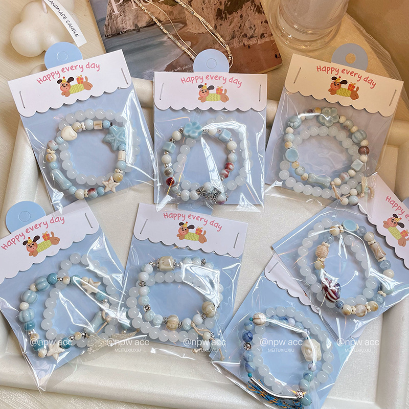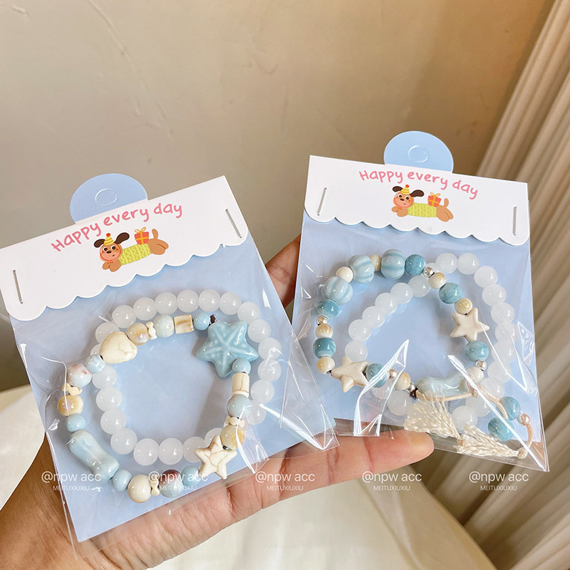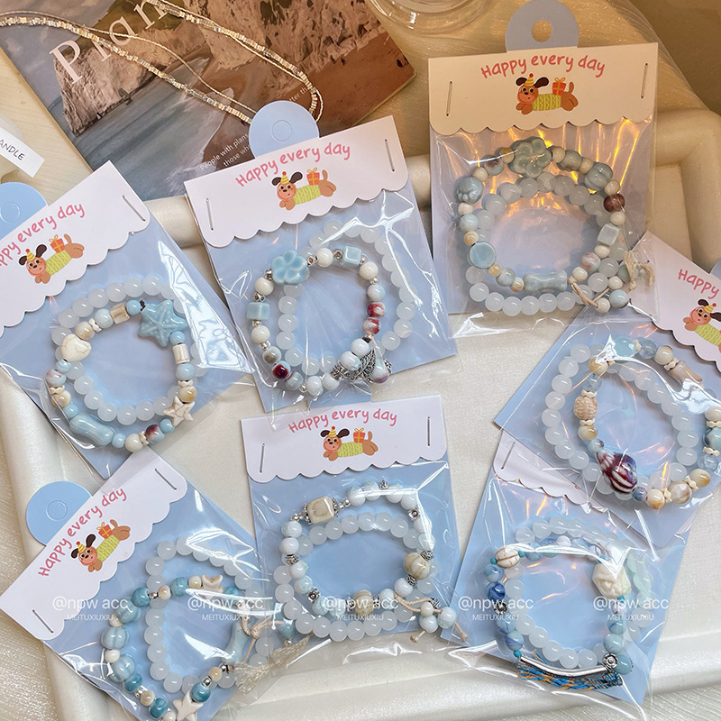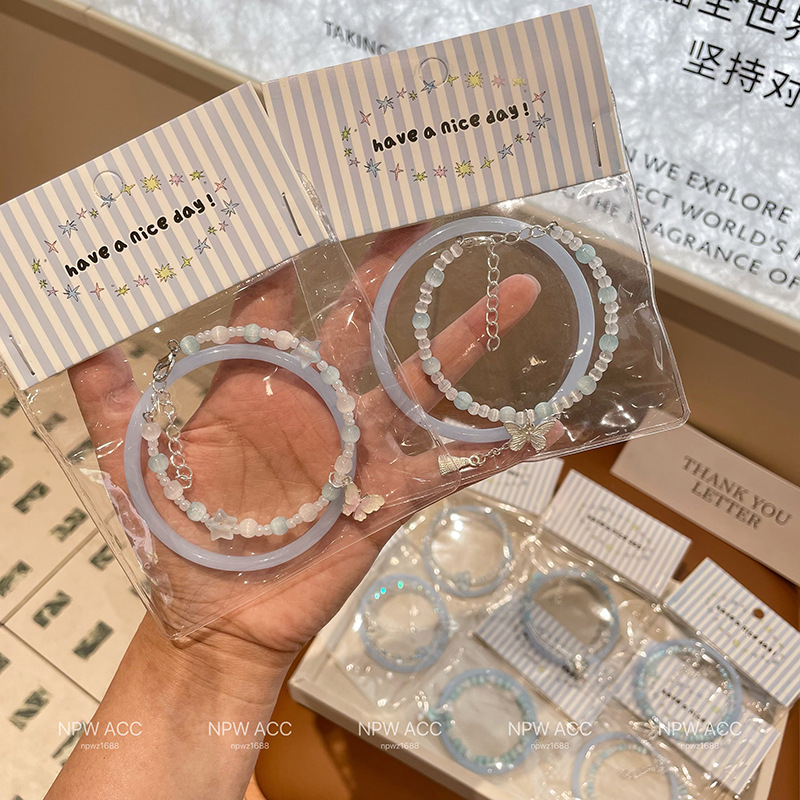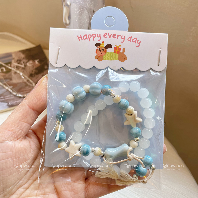 海蓝宝色蝴蝶结串珠手链女2025森系甜美星星手串小众设计百搭手饰