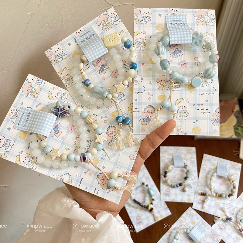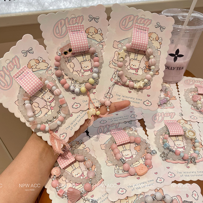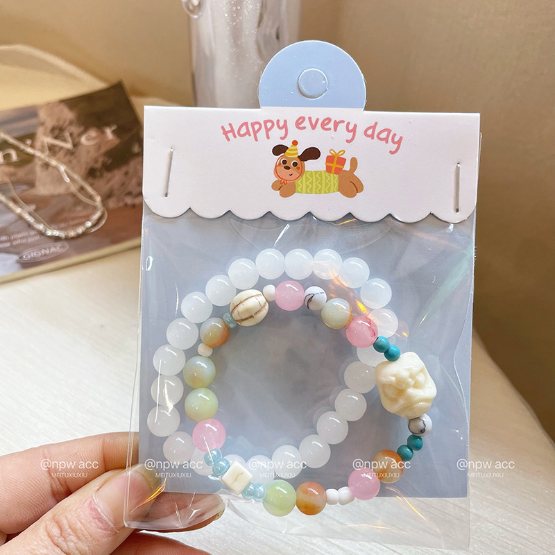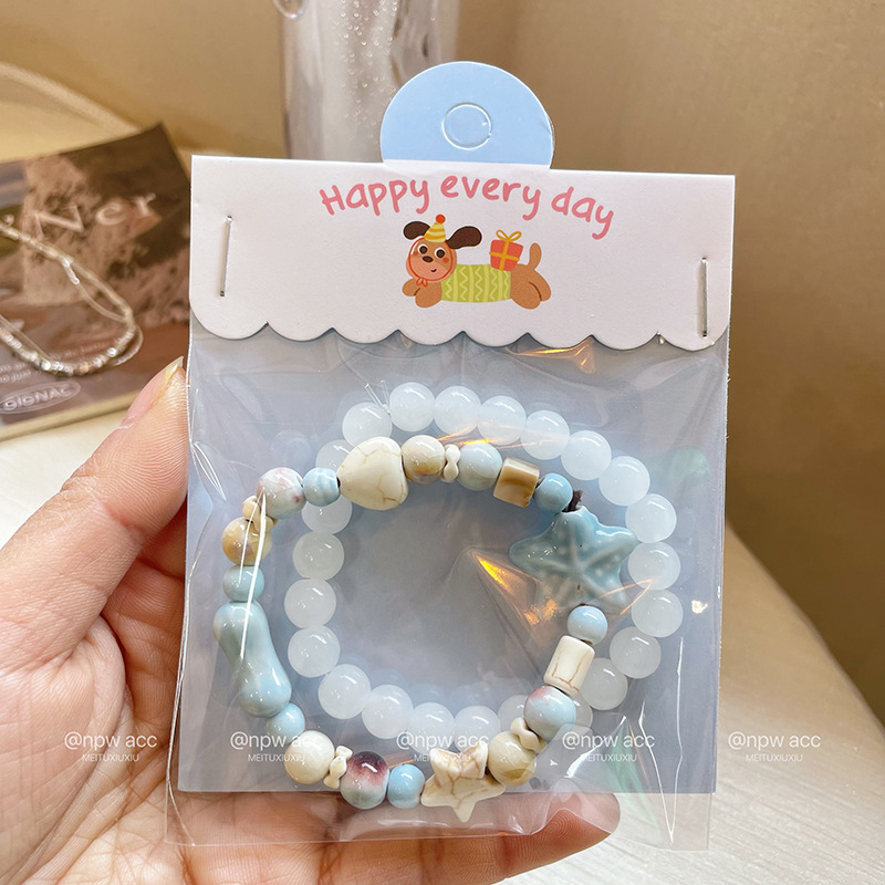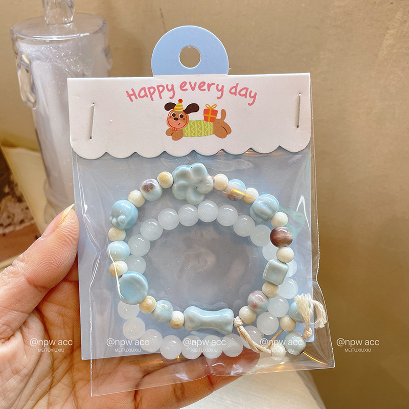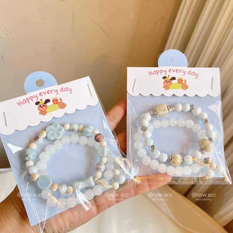 新款小熊景德镇陶瓷手串渐变手串单圈弹力绳百搭马卡龙手串手链