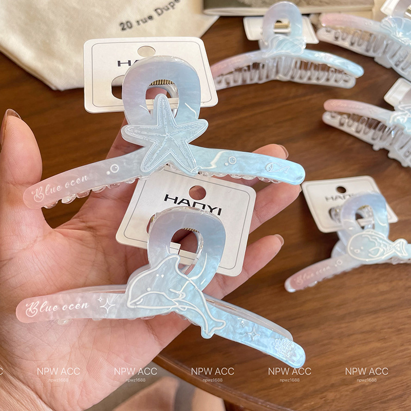 ブルーオーシャンフレッシュサマースターヘアクリップ後頭部ハイエンドグリッパー女性の大型サメクリップ帽子